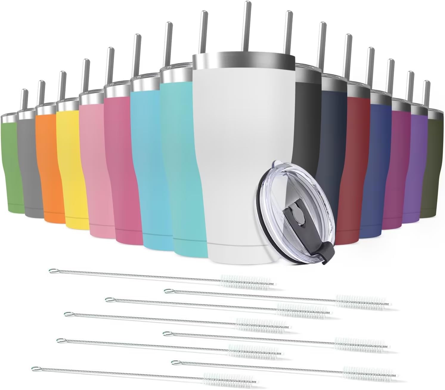 16 Pack 30oz Stainless Steel Tumblers Bulk Reusable Travel Mugs with Lid, Double Wall Powder Coated Coffe Cup for Home, Office, Outdoor Suitable for Vehicle Cup Holders