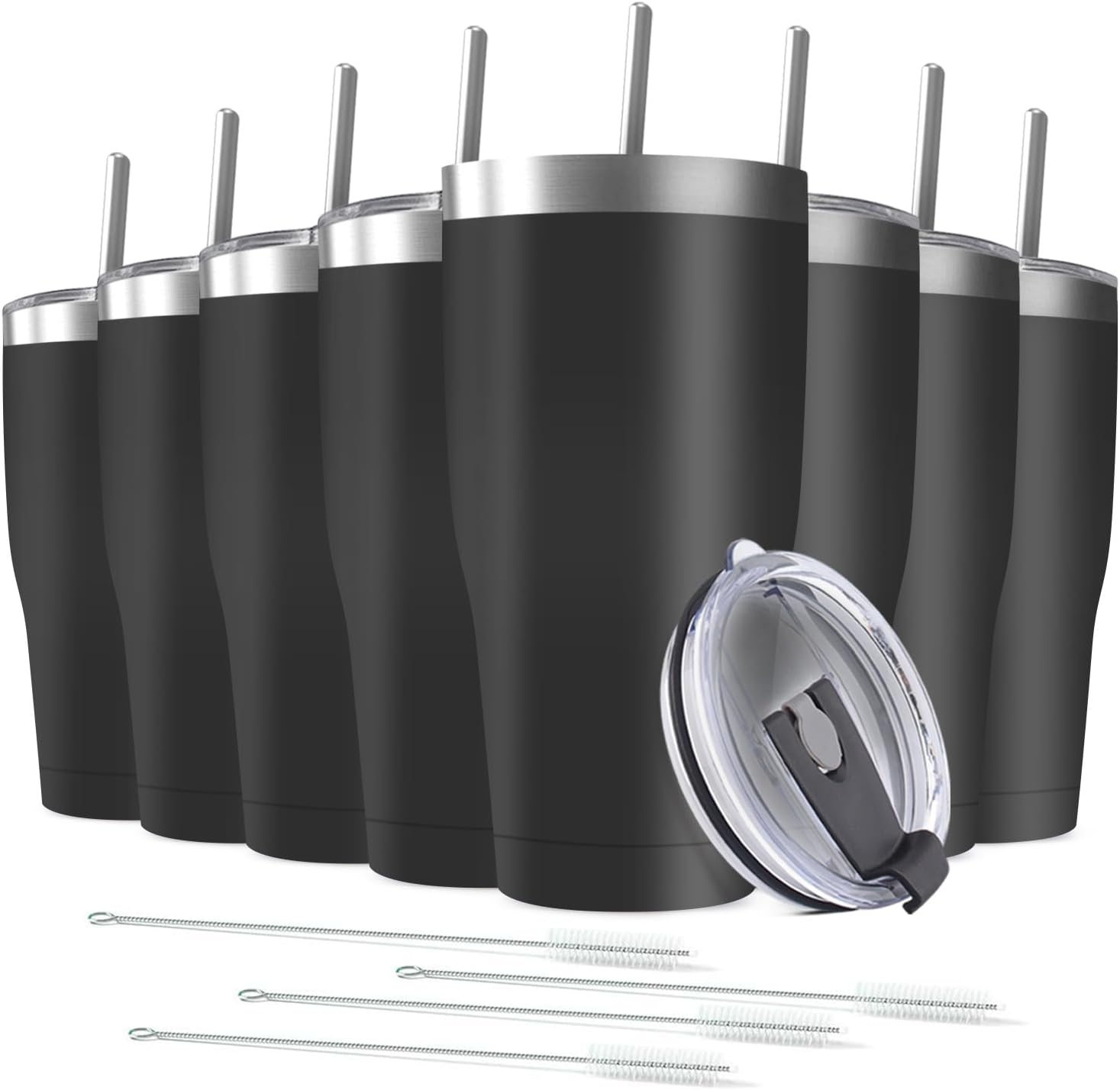 8 Pack 30oz Stainless Steel Tumblers Bulk Reusable Travel Mugs with Lid, Double Wall Powder Coated Coffe Cup for Home, Office, Outdoor Suitable for Vehicle Cup Holders