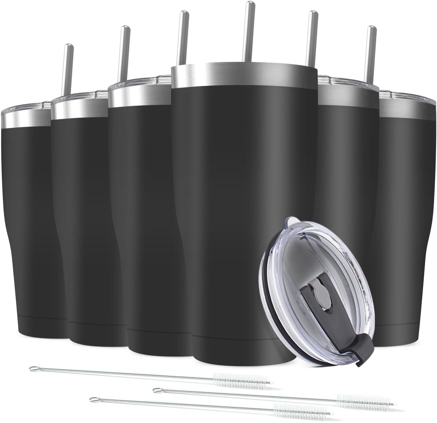 6 Pack 30oz Stainless Steel Tumblers Bulk Reusable Travel Mugs with Lid, Double Wall Powder Coated Coffe Cup for Home, Office, Outdoor Suitable for Vehicle Cup Holders