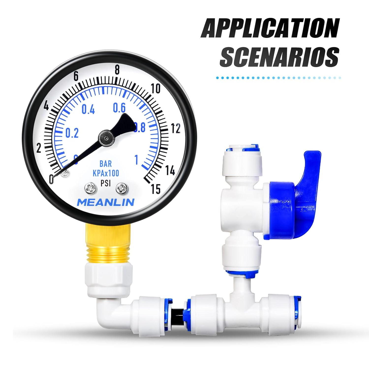 MEANLIN MEASURE 0-15Psi Well Pump Pressure Gauge 1/4" NPT 2" FACE DIAL for Water Oil Air Well Pump Tank Tire Pressure Test Lower Mount, with Teflon Tape