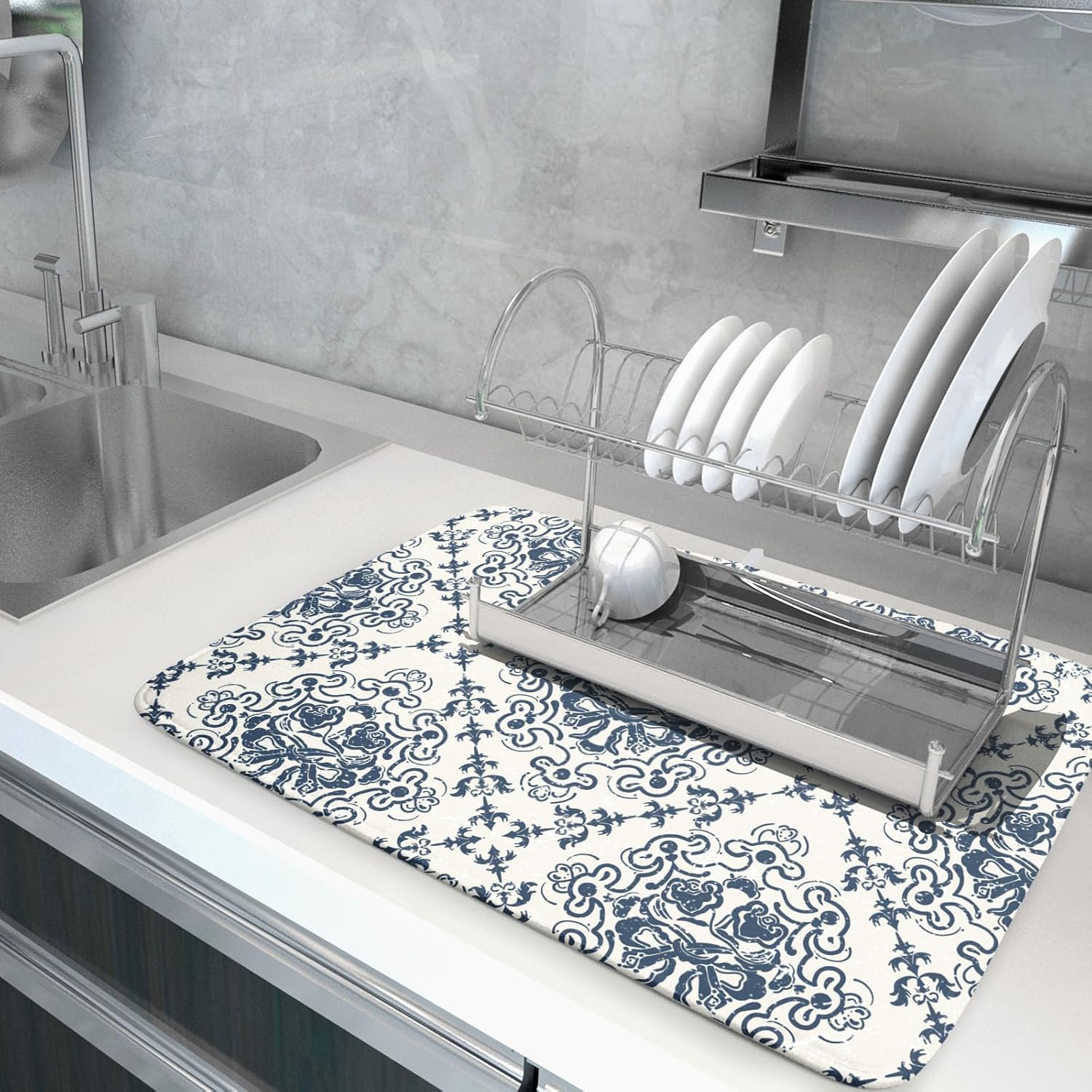 - 3【Unique Design】: Bohemian style dish drying mats with vibrant bright boho flower pattern, which can add more charming charm to your kitchen office or coffee bar counter. The drying mat for kitchen counter with unique hanging rope design that can be hung without occupying any space,soft and foldable, easy to store.