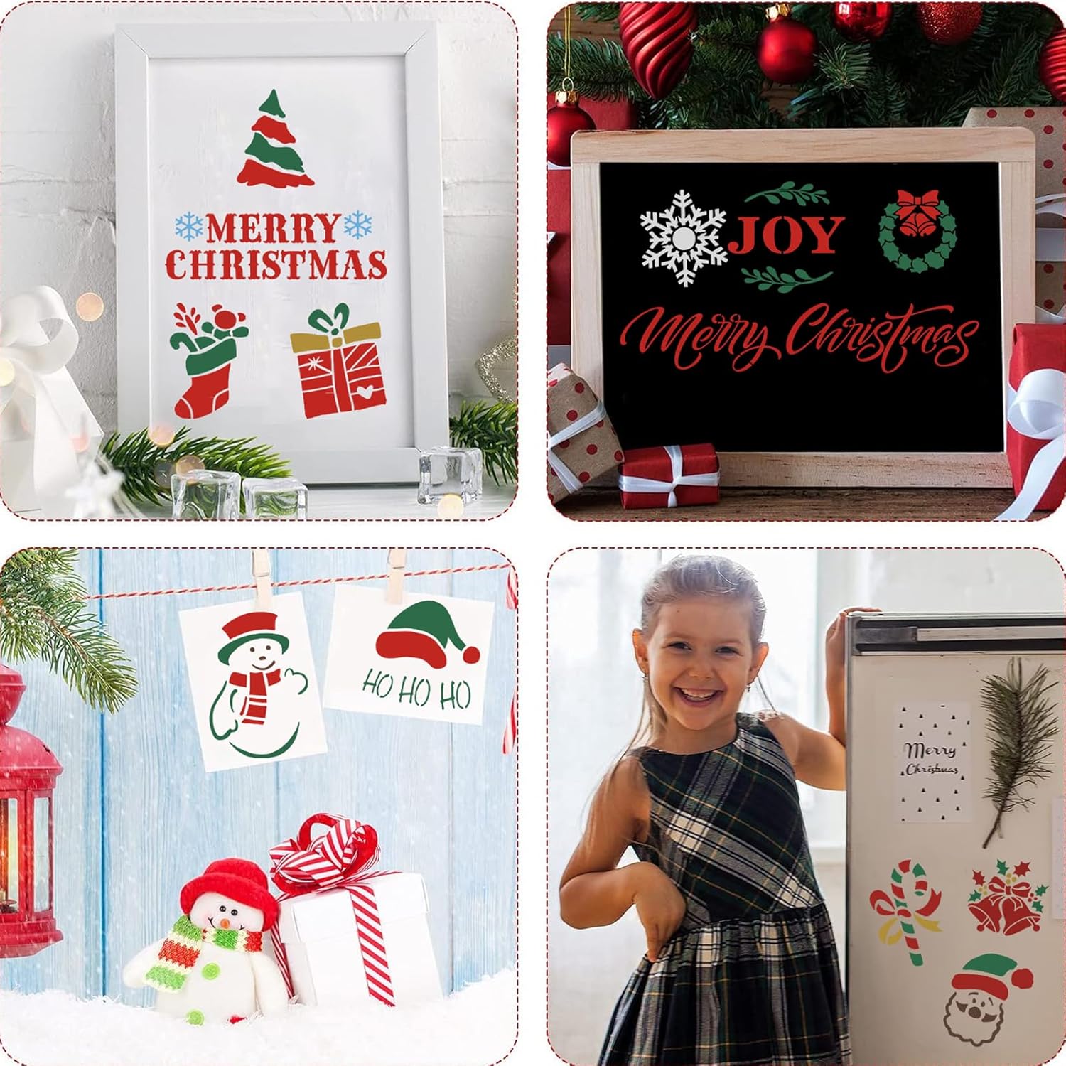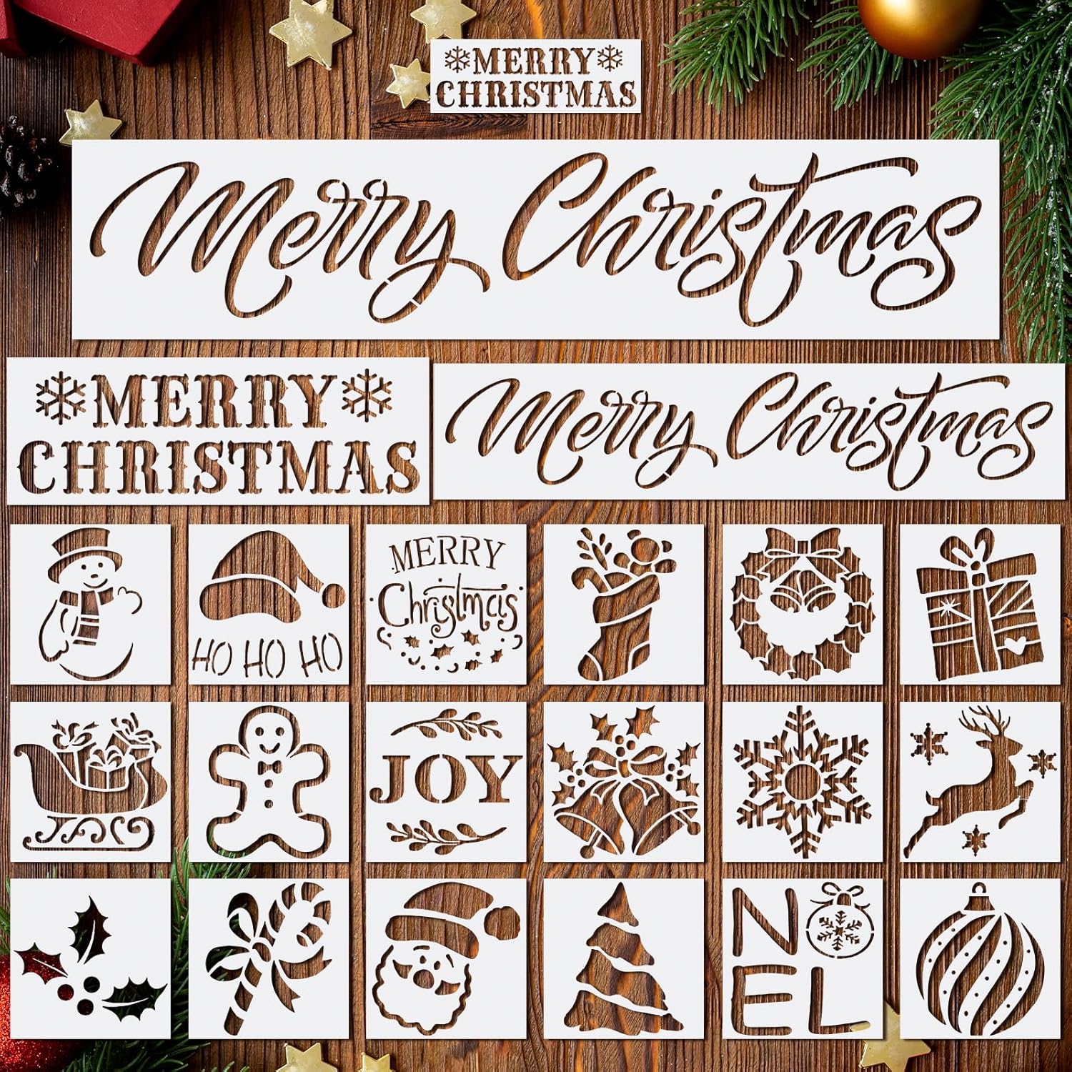 clothmile 21 PCS Merry Christmas Stencils for Painting Christmas Stencils Template Plastic Reusable Stencils for Christmas Decor Fabric Canvas Furniture, Wall, Window, Fabric, Wood DIY Home Decor