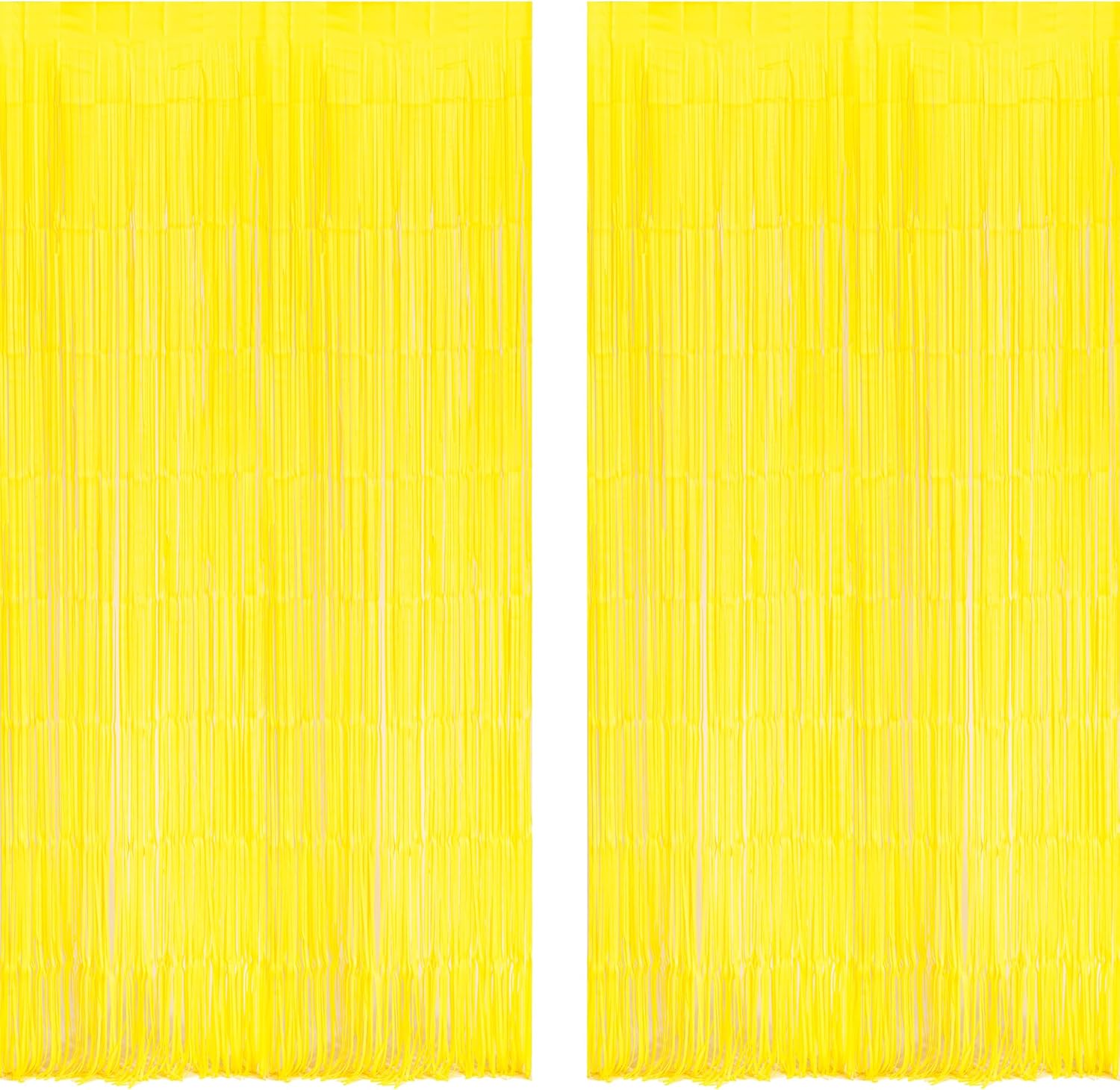 BRAVESHINE Foil Fringe Curtain Backdrop - 2 Pack Yellow Tinsel Photo Booth Backdrop Party Streamers for Easter, Birthdays, Christmas, Lemon, Pineapples, Kids' Party Decorations