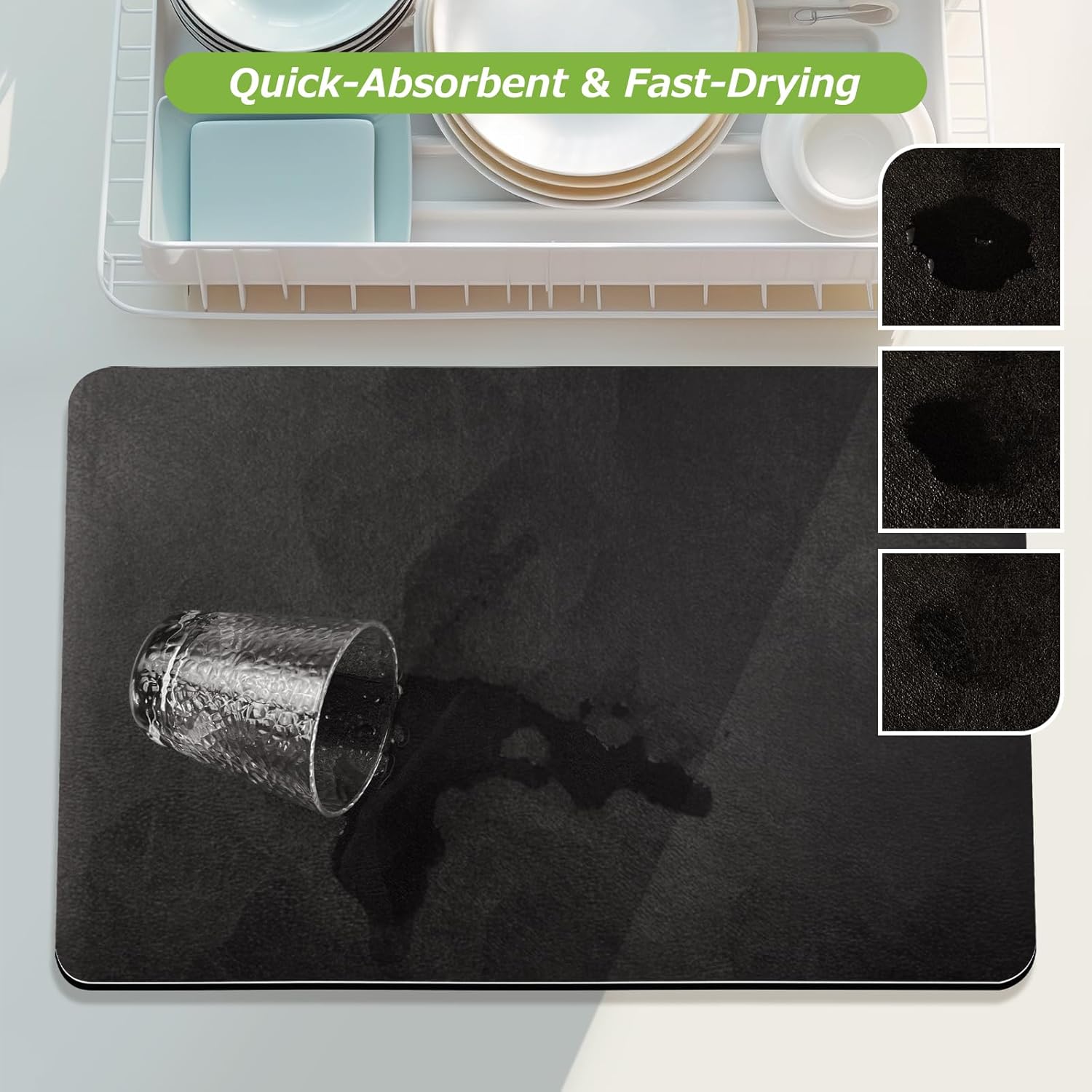 - 【Effortless Maintenance】 Designed for busy households, this mat is not only easy to wipe clean but also rinseable, machine washable, and even dishwasher safe. Whether you use it as a drying mat for dishes or a coffee bar mat, it’s built for hassle-free upkeep and long-lasting durability.