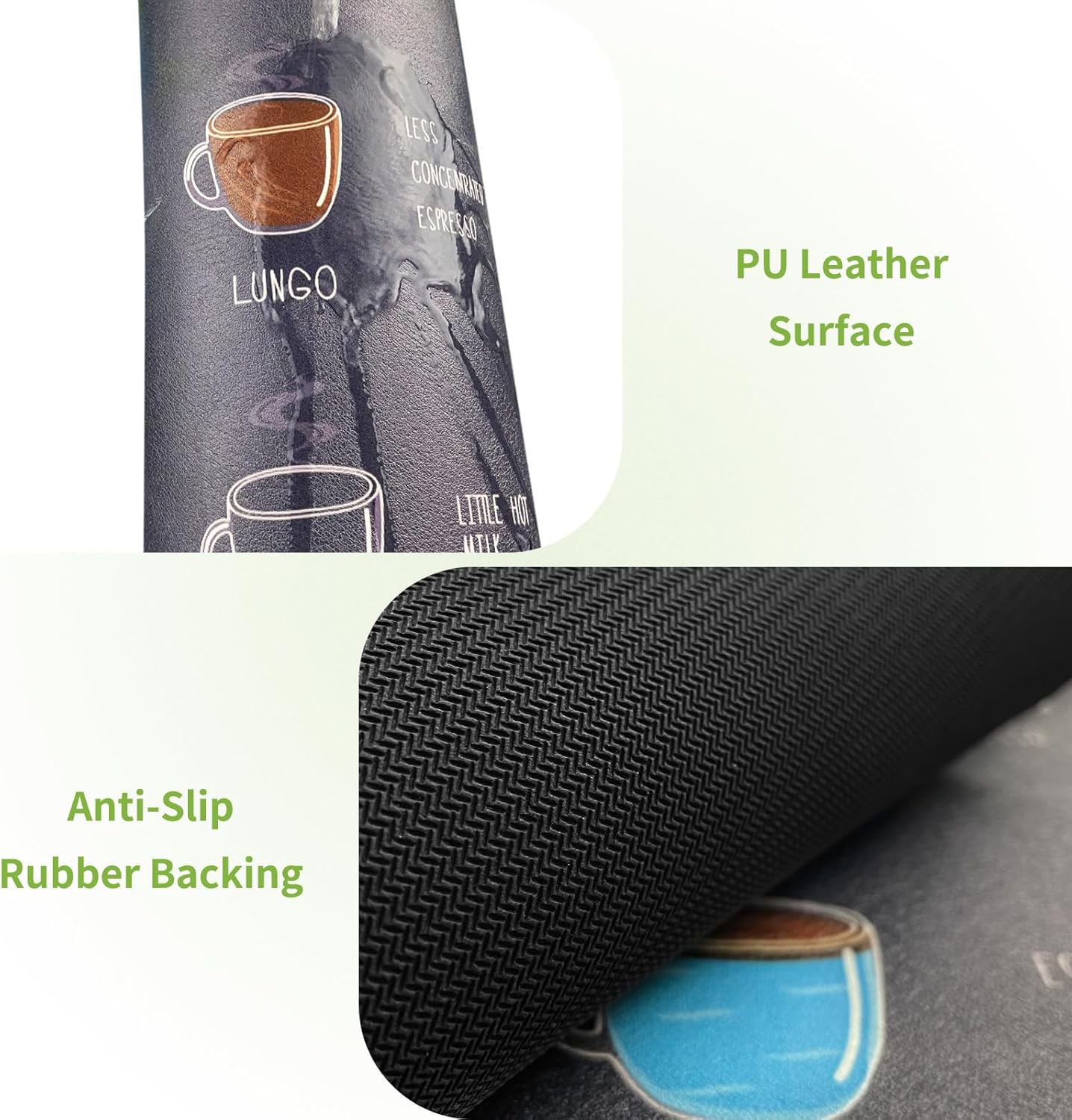 - 【Secure Anti-Slip Design】 With a durable rubber backing, the Matace Coffee Bar Mat ensures that dishes, cups, and appliances remain securely in place, even on wet or slick surfaces. Perfect for kitchen counters and coffee stations, this mat prevents unwanted movement and spills.