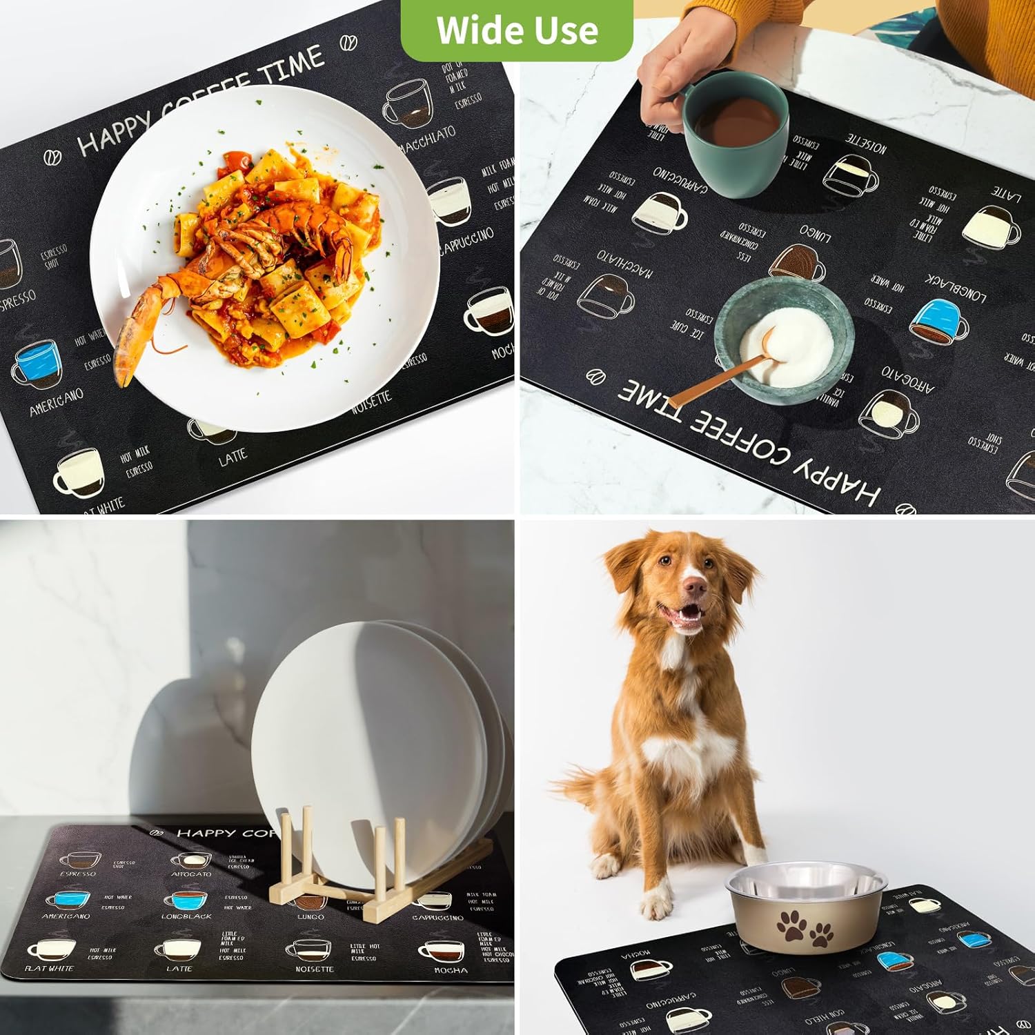 - 【Effortless Maintenance】 Designed for busy households, this mat is not only easy to wipe clean but also rinseable, machine washable, and even dishwasher safe. Whether you use it as a drying mat for dishes or a coffee bar mat, it’s built for hassle-free upkeep and long-lasting durability.