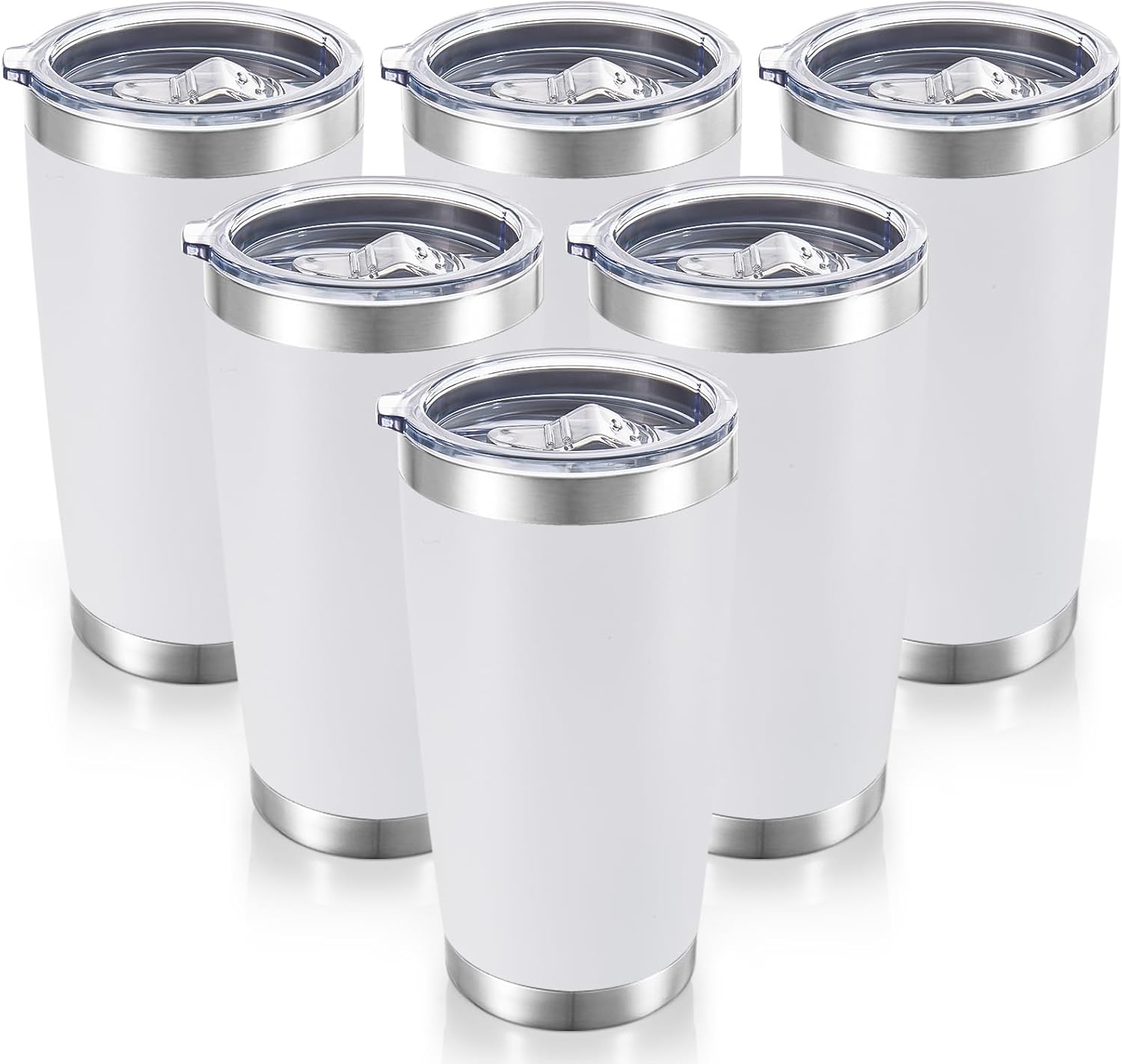 20 oz Tumblers Bulk Stainless Steel Tumbler with Lid Double Wall Vacuum Insulated Coffee Mug 20oz Powder Coated Cup for Hot and Cold Drinks, White, 6 pack