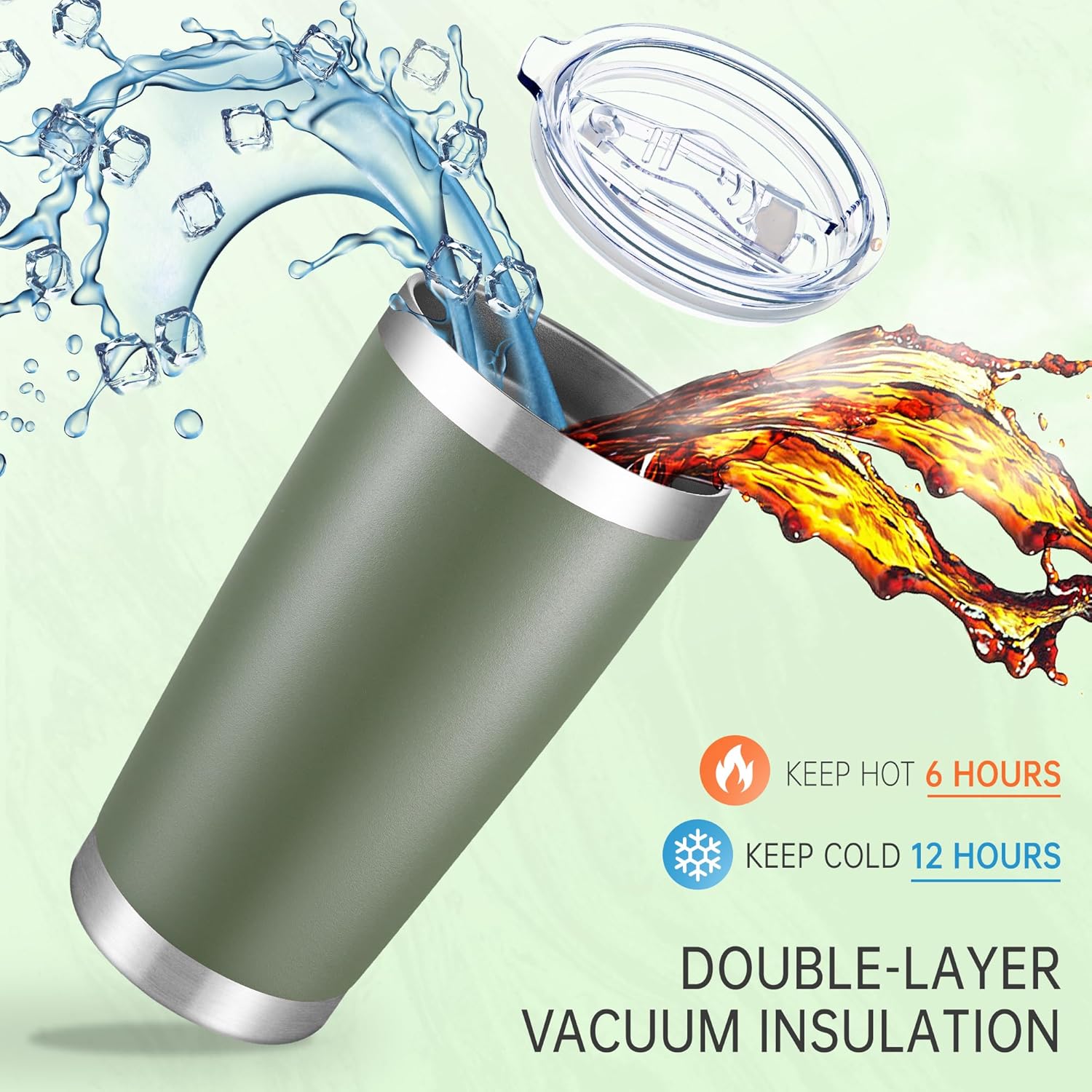 20 oz Tumbler Stainless Steel Tumblers with Lid Double Wall Vacuum Insulated Coffee Mug 20oz Powder Coated Cup for Hot and Cold Drinks, Army Green, 1 pack
