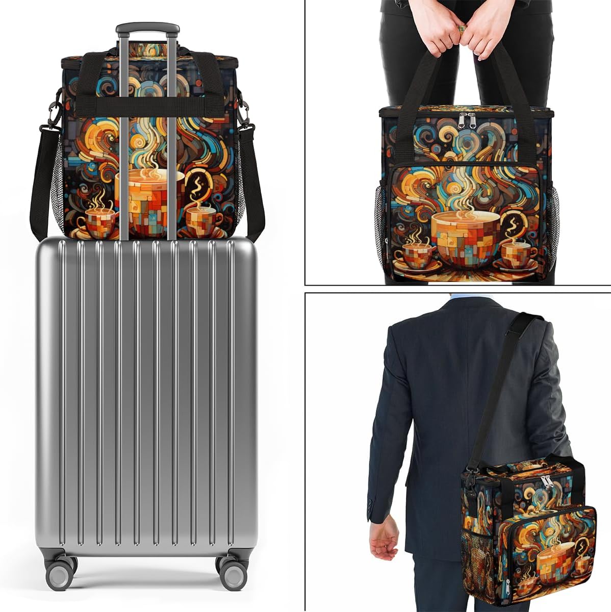 - ☕ PROTECT YOUR VALUABLE COFFE MAKER: The Colorful Aztec Coffee Cup coffee maker carrying case size is 12.5(L)x7.6(W)x13.3(H) inches, which is suitable for single serve coffee maker. The Colorful Aztec Coffee Cup coffee maker carry bag with a good cushion inside and zipper opening and closing, protect your coffee machine and accessories from collisions, dust, dirt, spills and scratches. And you can be assured that your coffee machines will stay protected when traveling.