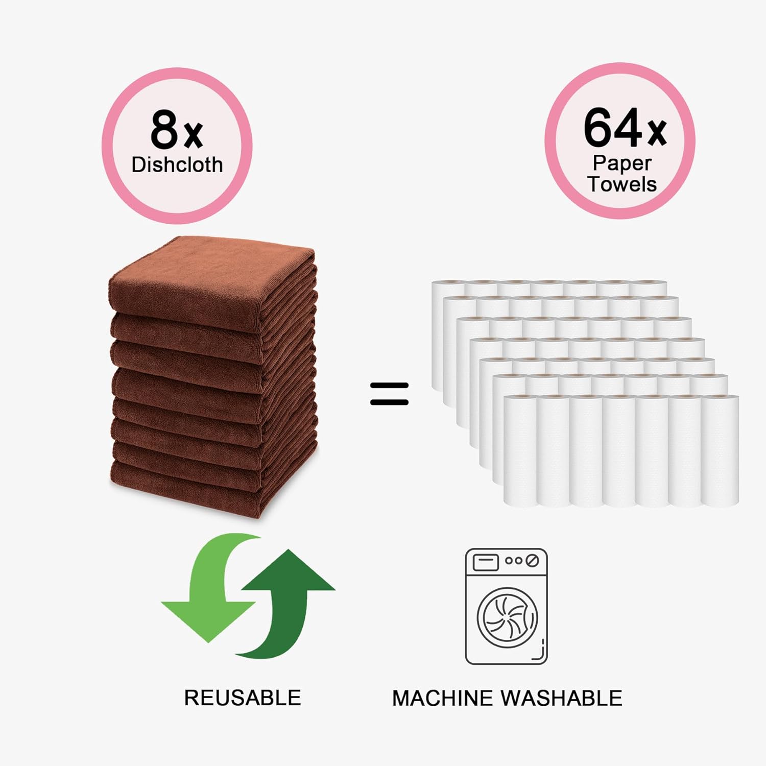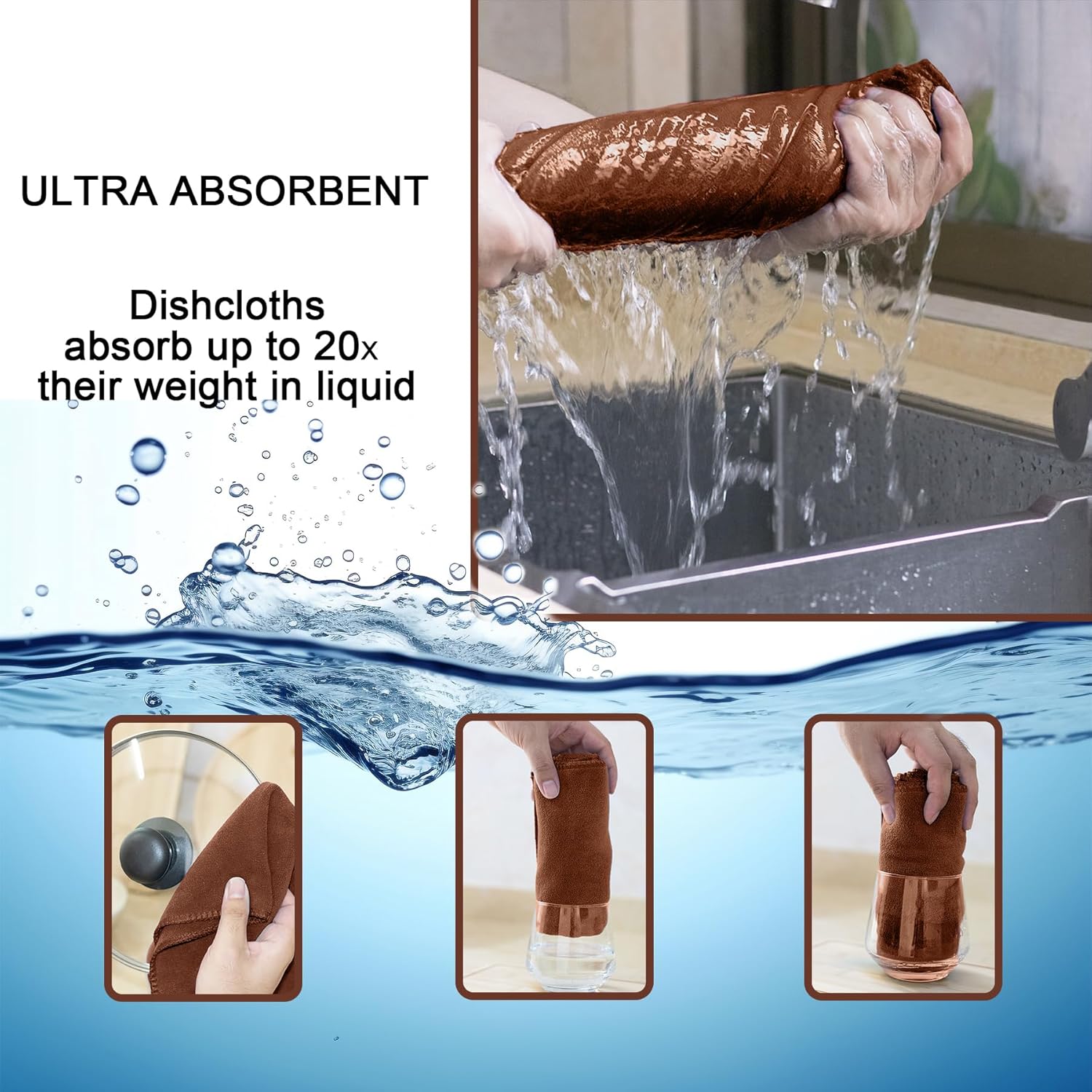 kimteny 13x28 Inches Kitchen Cloth Dish Towels, 400 GSM Premium Dishcloths, Super Absorbent Coral Velvet Microfiber Cleaning Cloths, Fast Drying Rags for Washing Dishes (8 Pack, Brown)