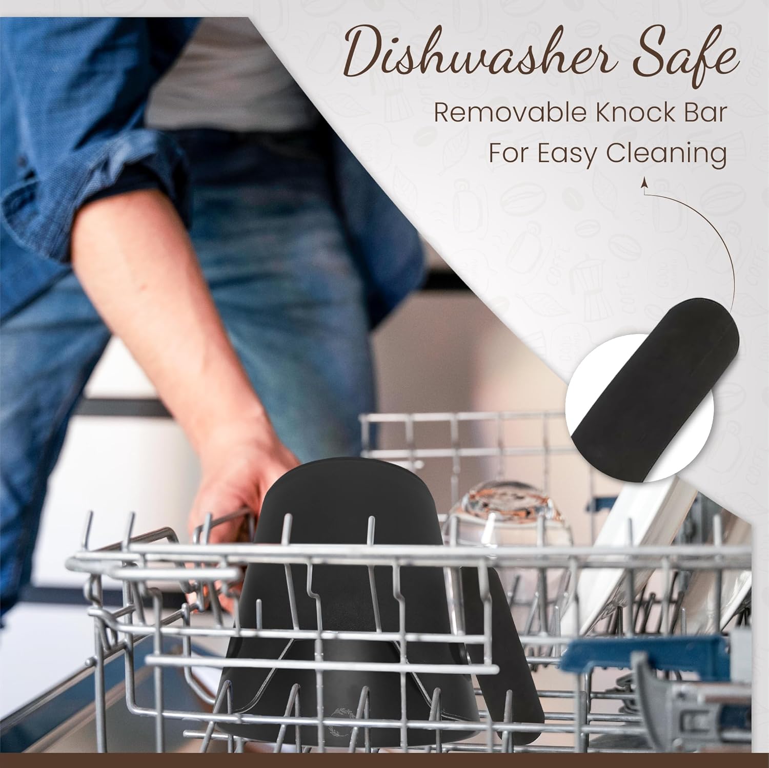 - Unique Knock Box: Essential for home baristas or cafe owners, this espresso bump box reduces workspace mess with high sidewalls and offset knock bar, ensuring unobstructed coffee puck disposal. Must-have compliment to your coffee barista accessories