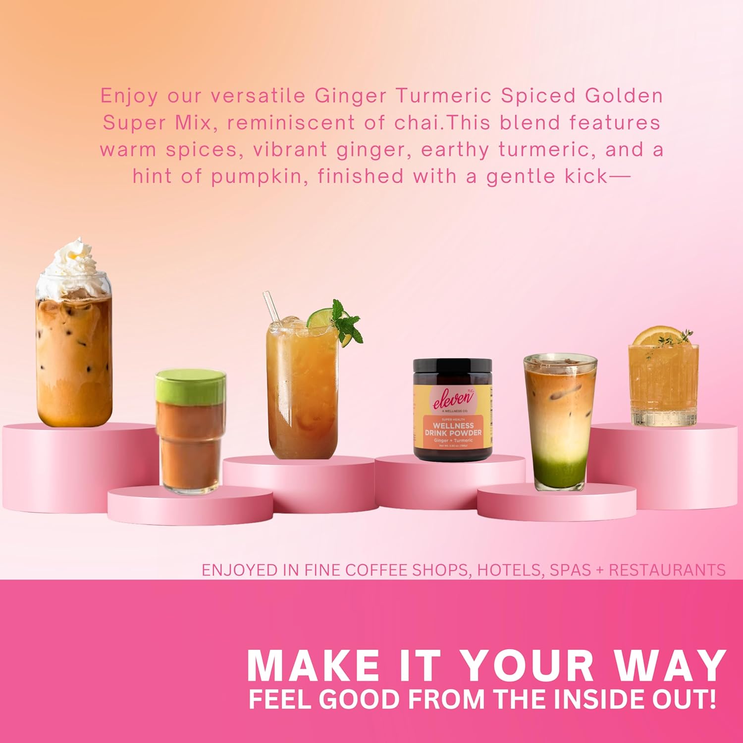 Eleven TLC, Organic Ginger Turmeric Spiced Golden Superfood Instant Latte & Drink Mix, Herbal Ginger Tea, Golden Milk Powder, Moon Cycle Non-Reactive Glass Jar, MD Formulated, 21 Servings
