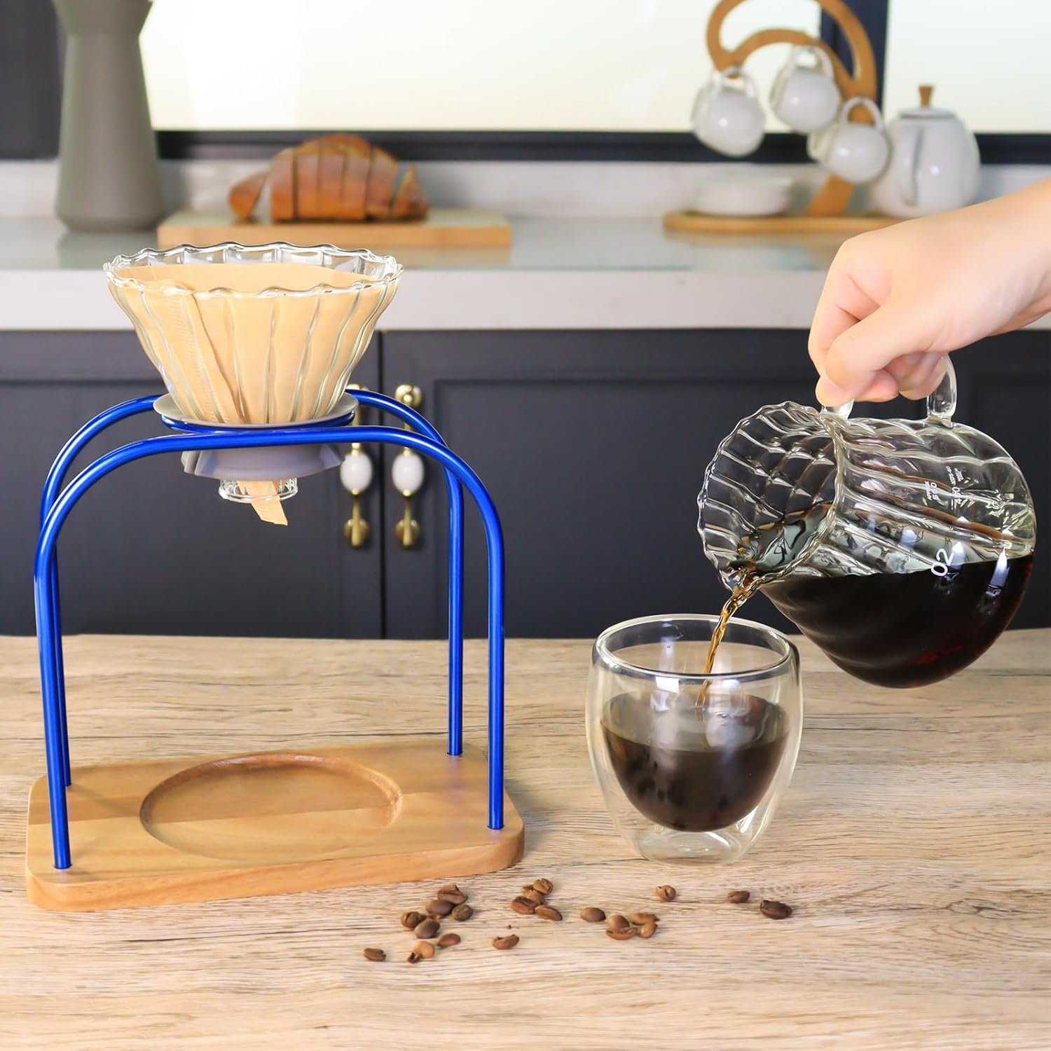 - Coffee maker: brand new design and unique dripper stand,electroplating gray coffee flter&glass server,simple and elegant,perfect accessory for every coffee maker.