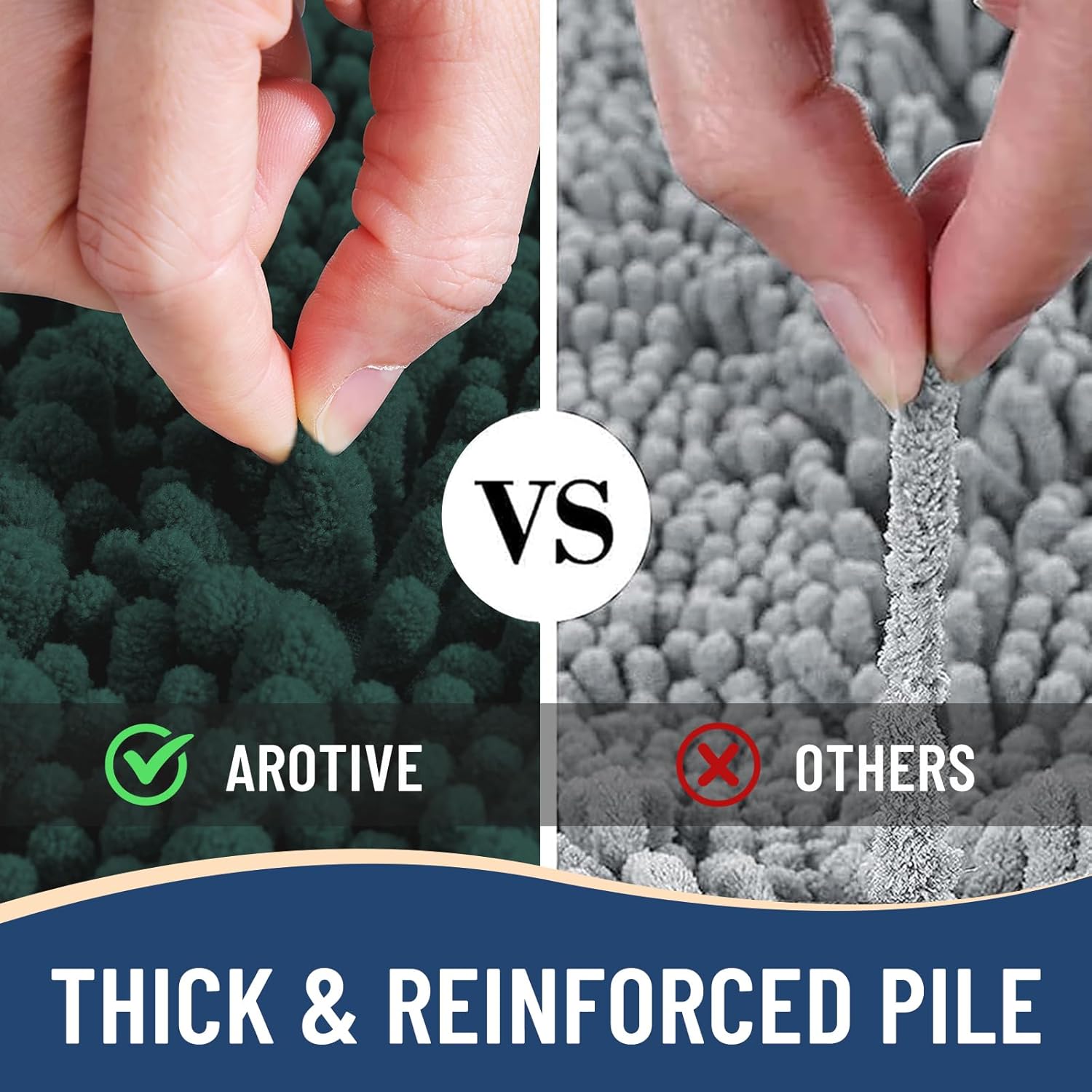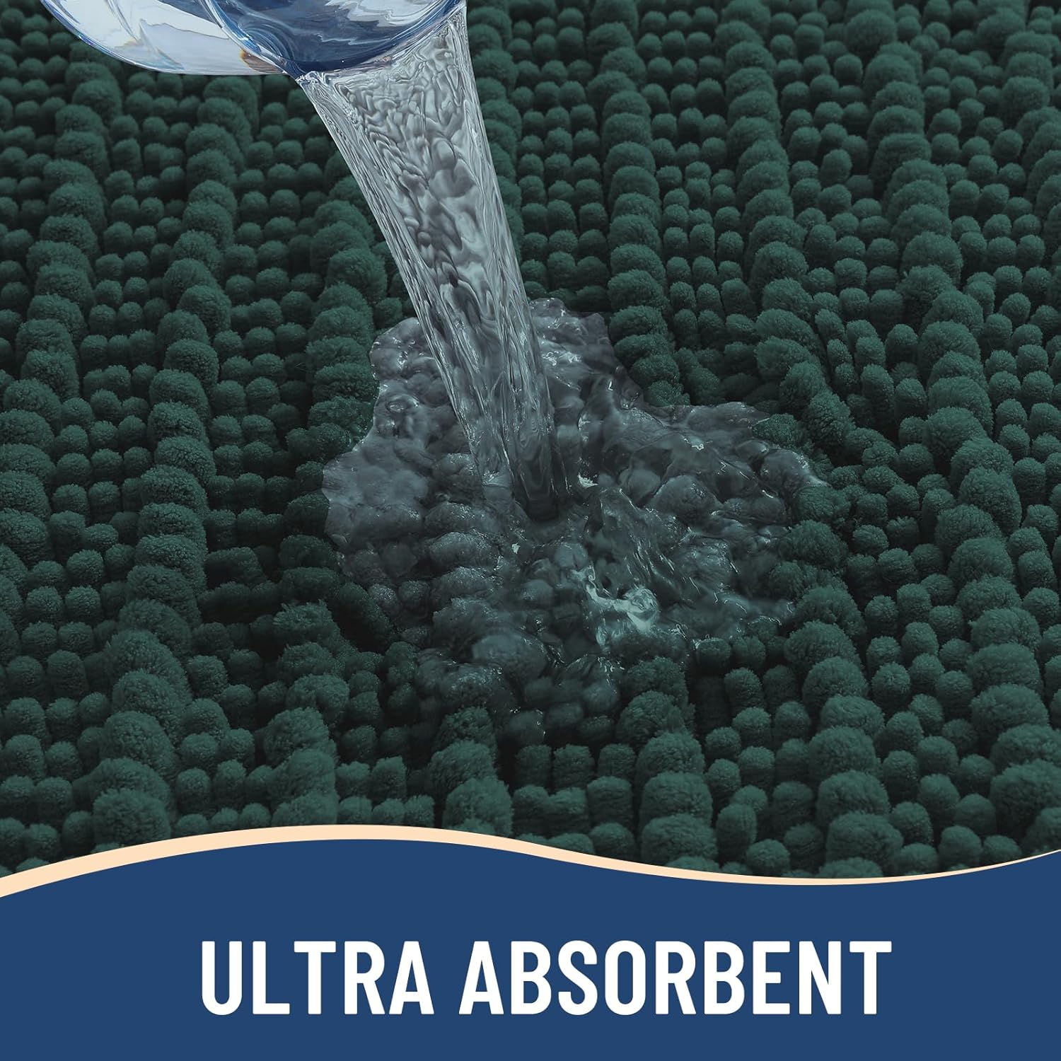 Arotive Luxury Chenille Bathroom Rug Mat, Extra Soft Thick Absorbent Shaggy Bath Rugs, Non-Slip Machine Wash Dry, Plush Bath Mats for Bathroom, Shower and Tub, 47x24, Dark Green
