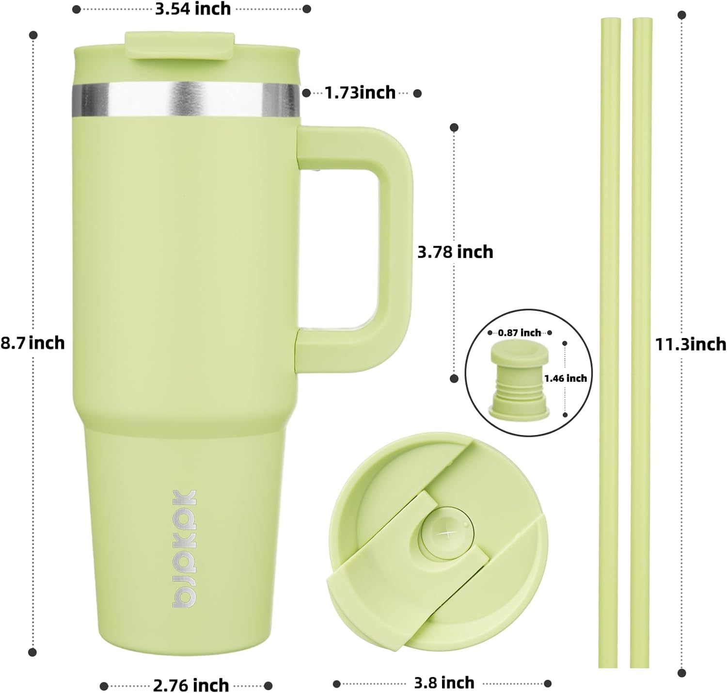 - Cupholder Friendly Travel Mugs With Handle: The Insulated Cups Has a Narrow Bottom And A Wide Mouth Fits Most Cup Holder In Car, With A Comfortable Ergonomic Silicone Handle And Two Reusable Straw To Use More Portable, You Can Stay Sipping From Your Essential Hydration Companion, Even On Your Busiest Days
