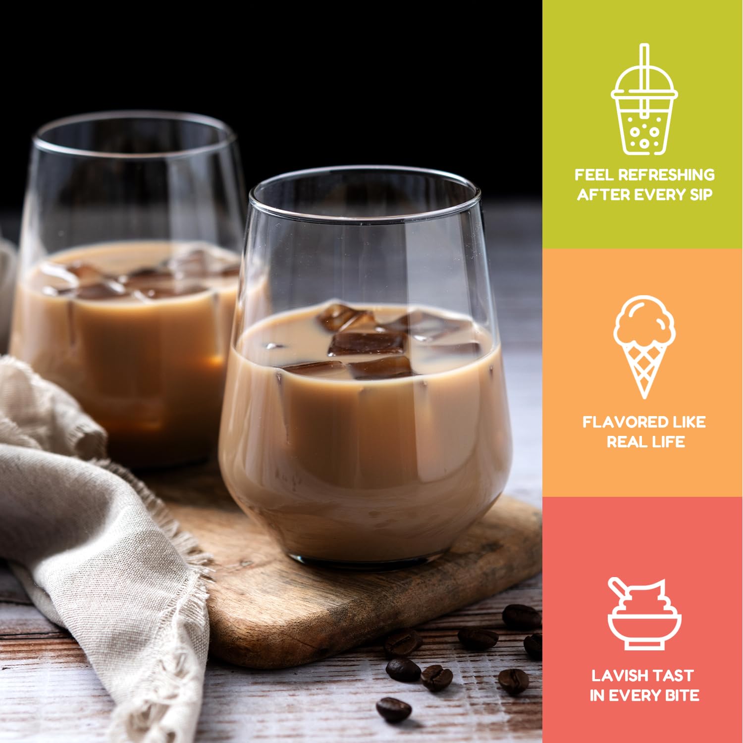 - 𝐒𝐰𝐞𝐞𝐭 𝐚𝐧𝐝 𝐄𝐱𝐨𝐭𝐢𝐜 𝐅𝐥𝐚𝐯𝐨𝐫: Each Fanale coconut jelly boba tea variety is infused with sweet and exotic flavors that complement a range of recipes. This nata de coco jelly topping includes strawberry, lychee, blueberry, mango, sakura, green apple, coconut, Konjac, and coffee flavors, adding a distinct and delightful twist to your creations.