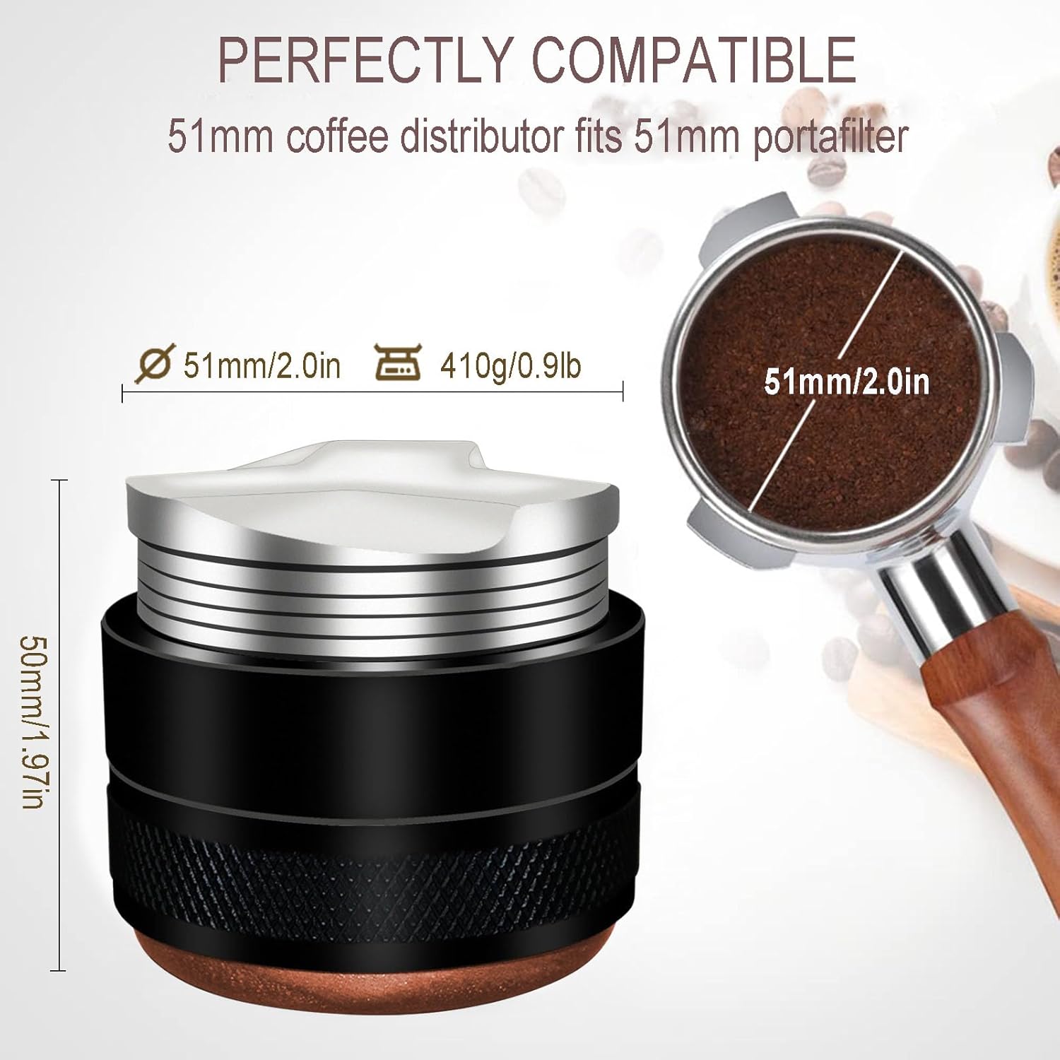 • Premium Material:The coffee distributor is made of high quality materials.The base of espresso distributor is made of stainless steel, which is safe, healthy, strong and thick. The coffee distributor's cover is made of walnut wood,which is Noble and refined..The espresso distributor tool is durable, corrosion-resistant and not easy to rust