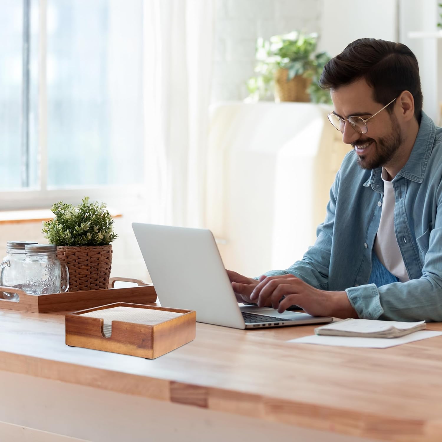 - Traditional Craftsmanship: Acacia wooden products in our store are skillfully handcrafted, ensuring each piece brings a luxurious feel and showcases unique wood grains, making yours one of a kind. The U-shape cutout in this flat wood box allows for easy access to your napkins, one at a time, without disturbing the rest.