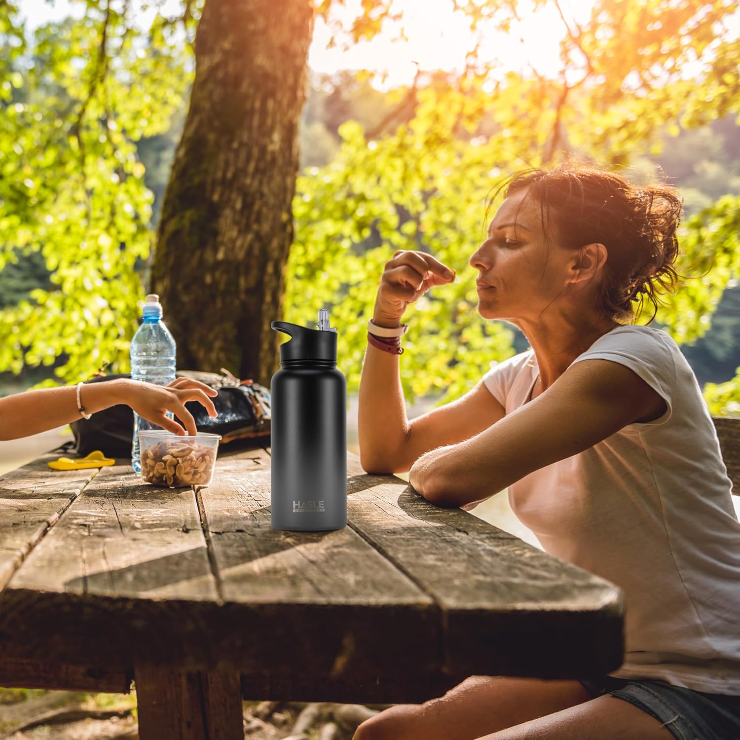 HASLE OUTFITTERS 32oz Stainless Steel Water Bottle, Vacuum Insulated Double Walled Leak Proof Sports Water Bottle with 2 Lids (Straw and Spout Lid) Thermo Mug Keep Cold and Hot(Black Gray Gradient,1)