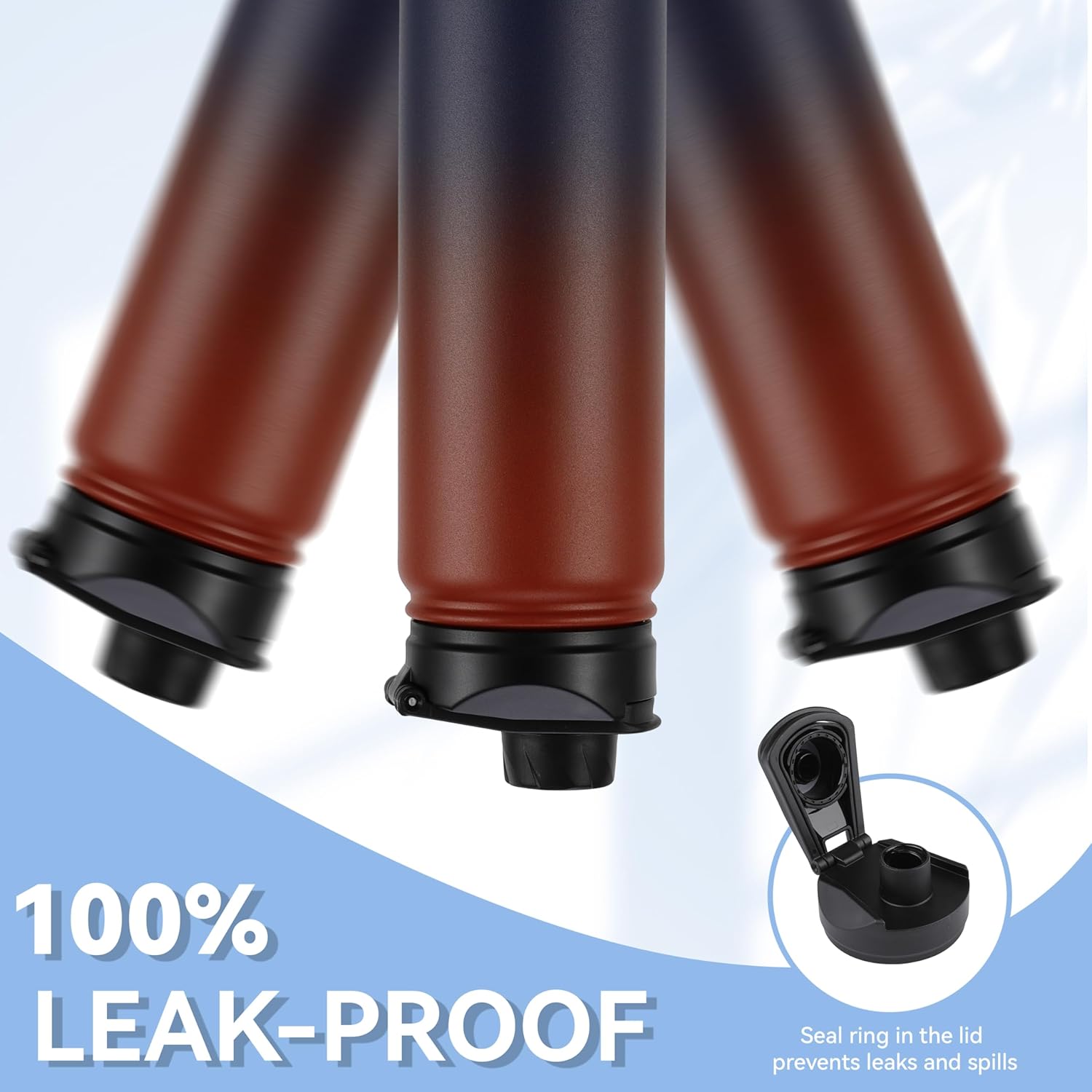 - 【Spout Lid & Straw Lid】 This water bottle comes with 2 lids: an innovative leak-proof spout lid and a newly improved straw lid that has been enhanced for better flow. Easily fill your water bottle with ice and clean it through the wide mouth opening. Both allow easy one-handed or hands free sipping, they are designed for you to drink anytime, anywhere.