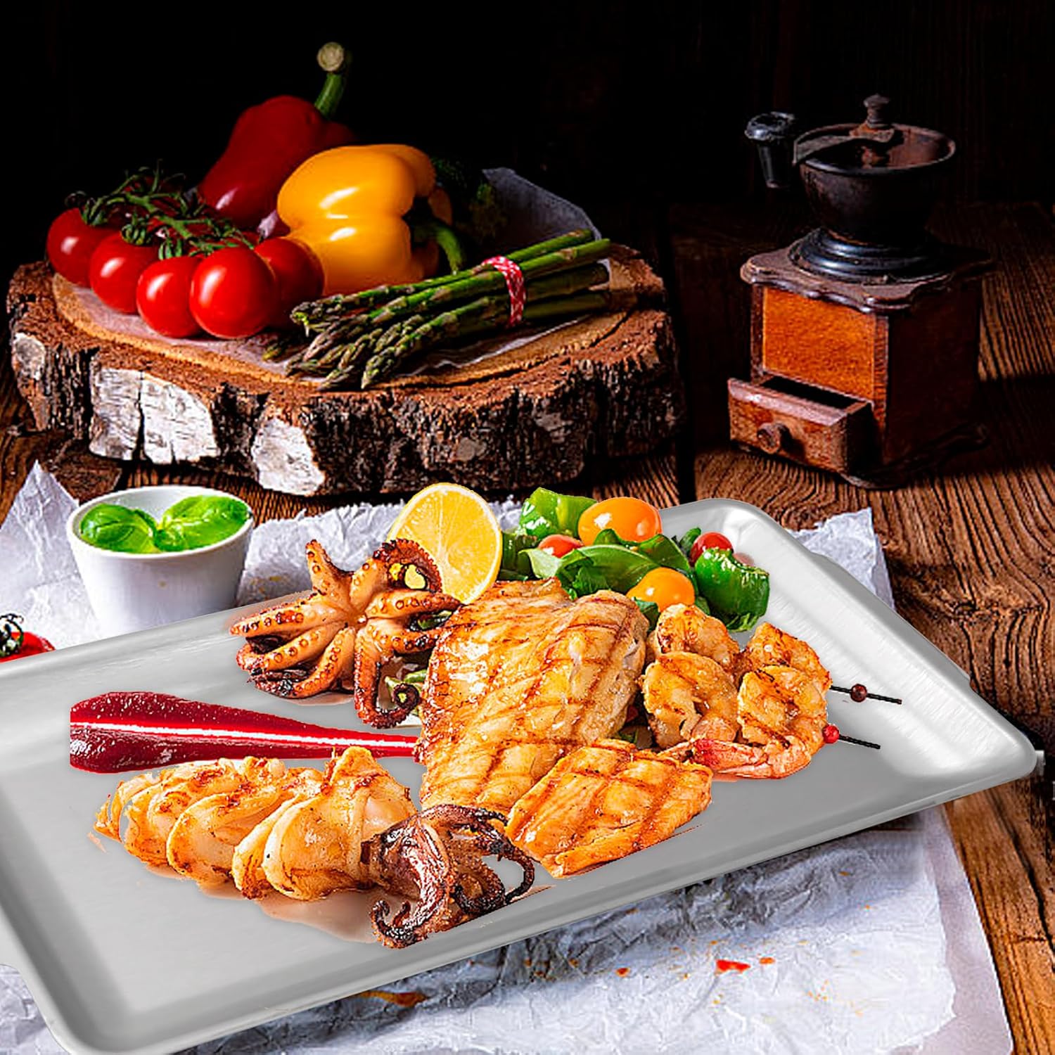 - Special Design: The raised edges design can prevent food spill away. The extended parts on both sides facilitate gripping the tray.