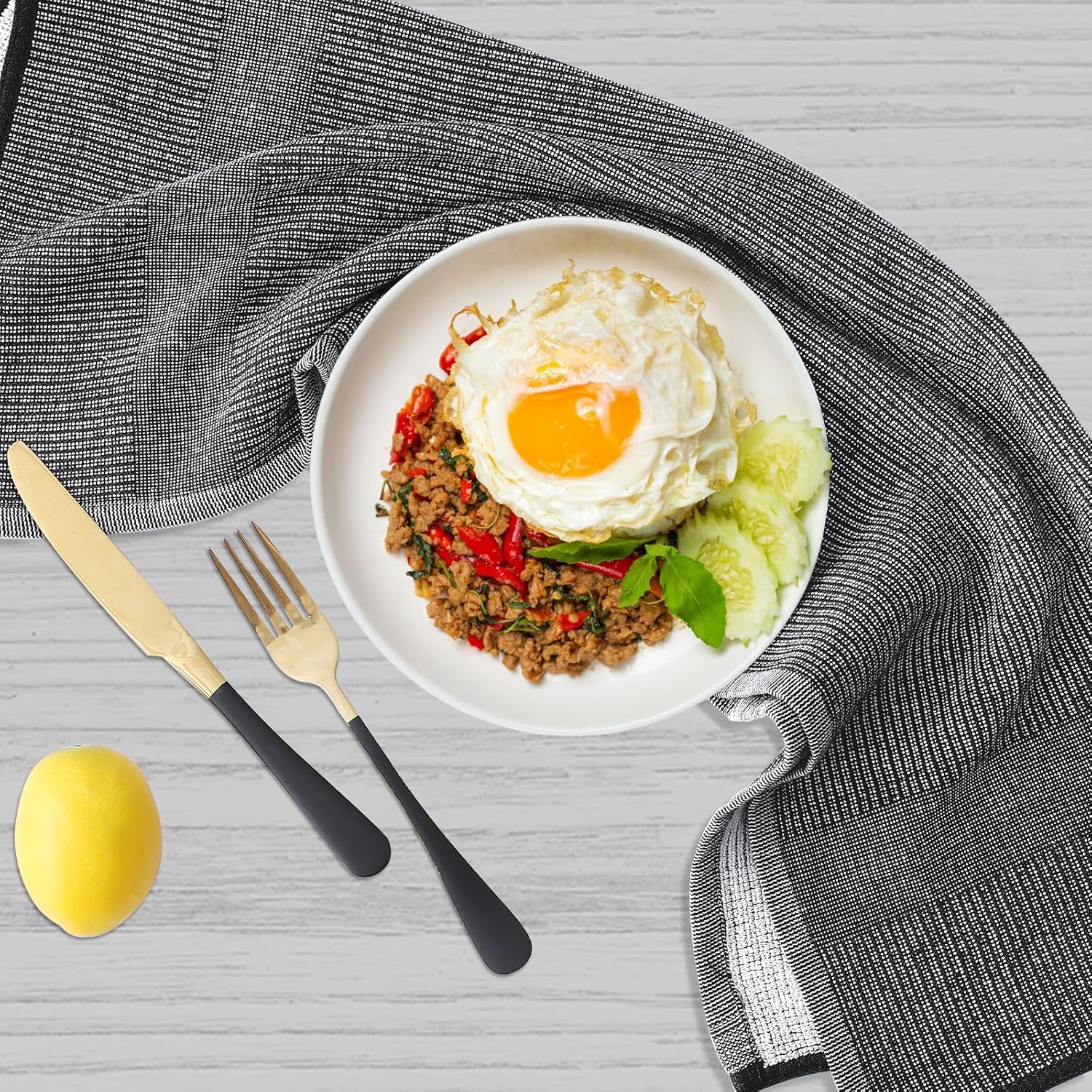 Homaxy Premium Kitchen Towels(18”x 28”, 6 Pack), Large Cotton Kitchen Hand Towels, Flat and Terry Dish Towels, 380 GSM Highly Absorbent Tea Towel Set with Hanging Loop, Black