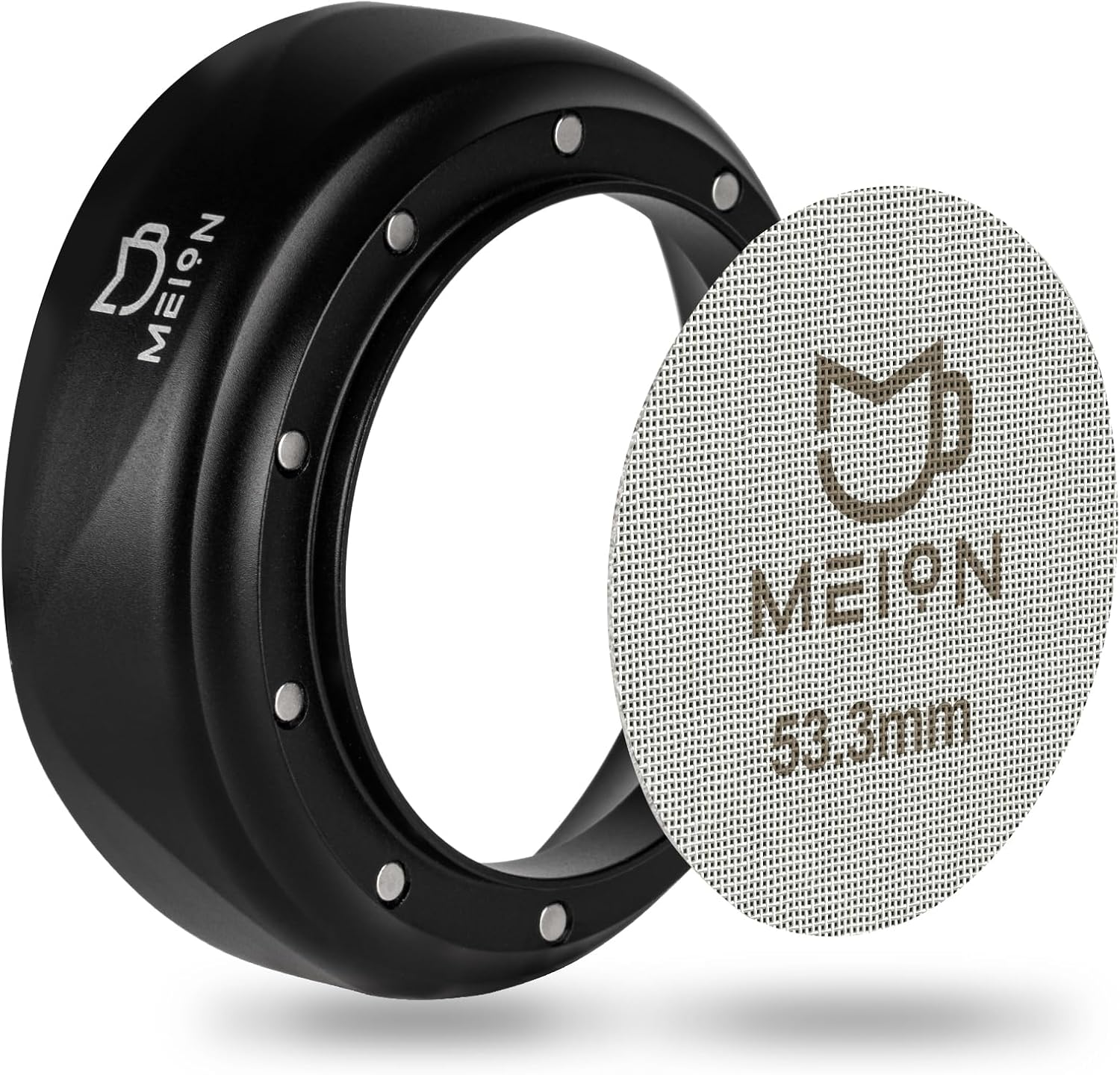 MEION 54mm Espresso Dosing Funnel and Puck Screen Set for 54mm Breville Portafilters, Magnetic Coffee Funnel, Reusable 53.3mm Espresso Puck Screen, Espresso Tools Espresso Accessories (54mm, Black)