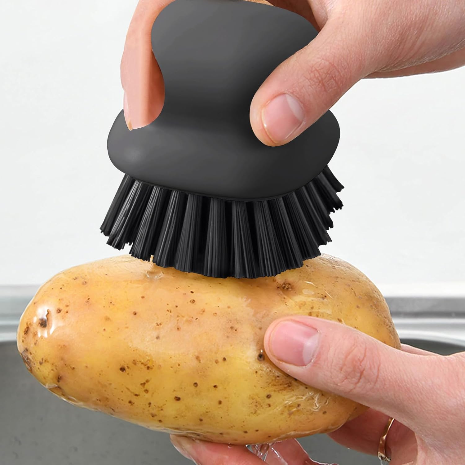 2Pack Dish Scrub Brush, Palm Brush Dish Scrubber with Ergonomic Grip, Kitchen Scrub Brushes for Cleaning for Pans, Pots, Kitchen Sink Cleaning-Black