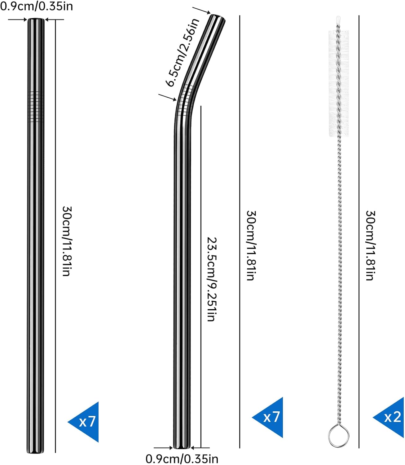 - 🍹 Exceptional Value Set - This fantastic package includes 7 straight straws (11.8" x 0.35"), 7 curved straws (11.8" x 0.35"), complemented by 2 additional extra-long cleaning brushes. Offering superior convenience and practicality, this set is a must-have for any household.
