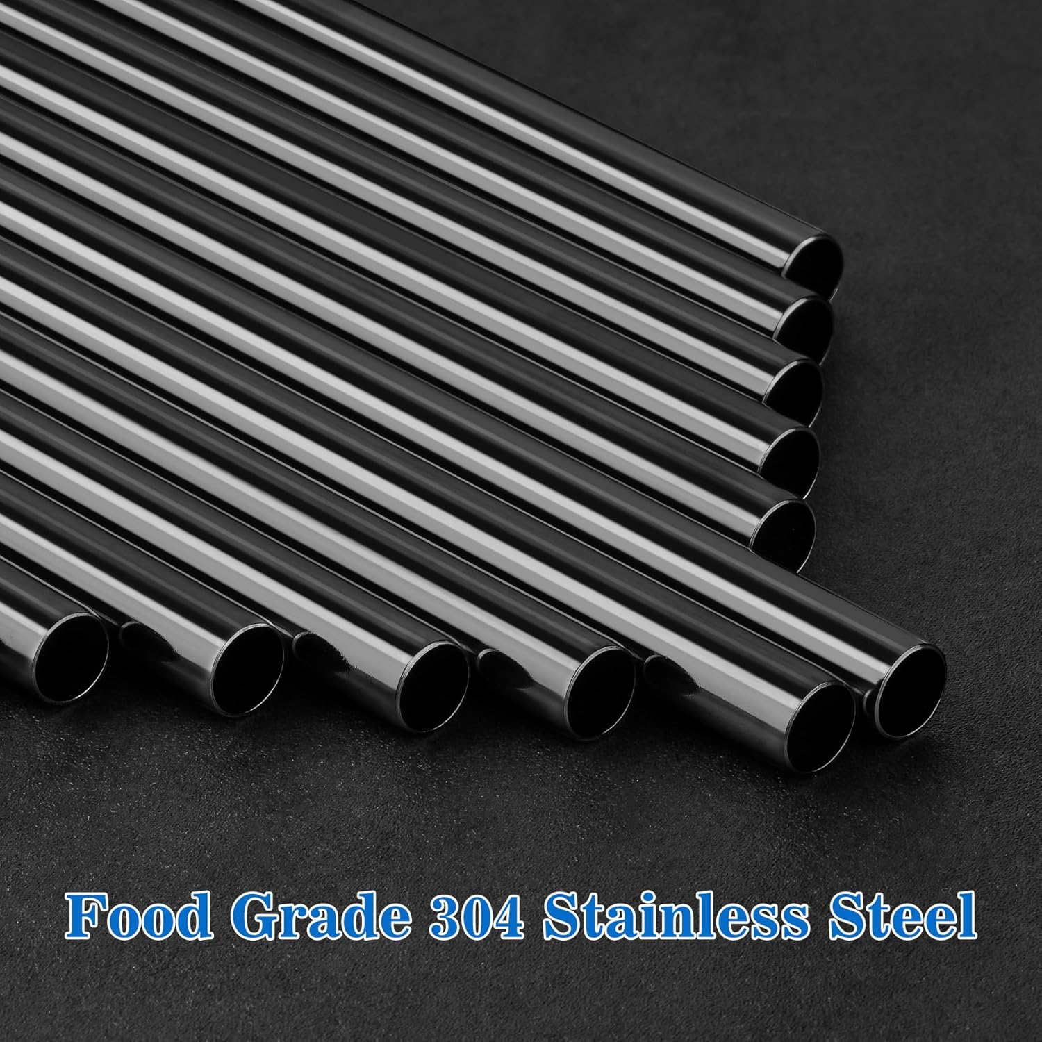 Tomorotec 40oz Straws, 14PCS Stainless Steel Replacement Straws for Stanley 40oz Adventure Quencher Travel Tumblers with Cleaning Brushes 2PCS, Food-Grade, Dishwasher Safe for Smoothies (Black)