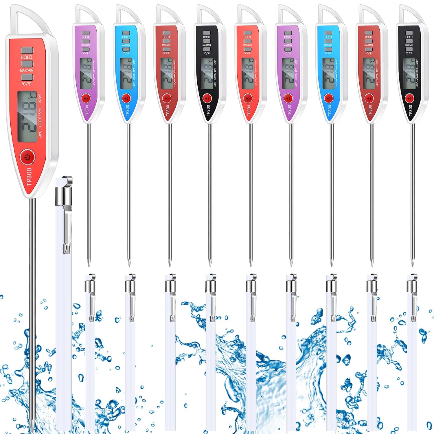 10 Set Waterproof Food Thermometer for Water, Liquid, Candle and Cooking Digital Meat Thermometer with Long Probe Instant Read for Kitchen BBQ Grill Candy (White)