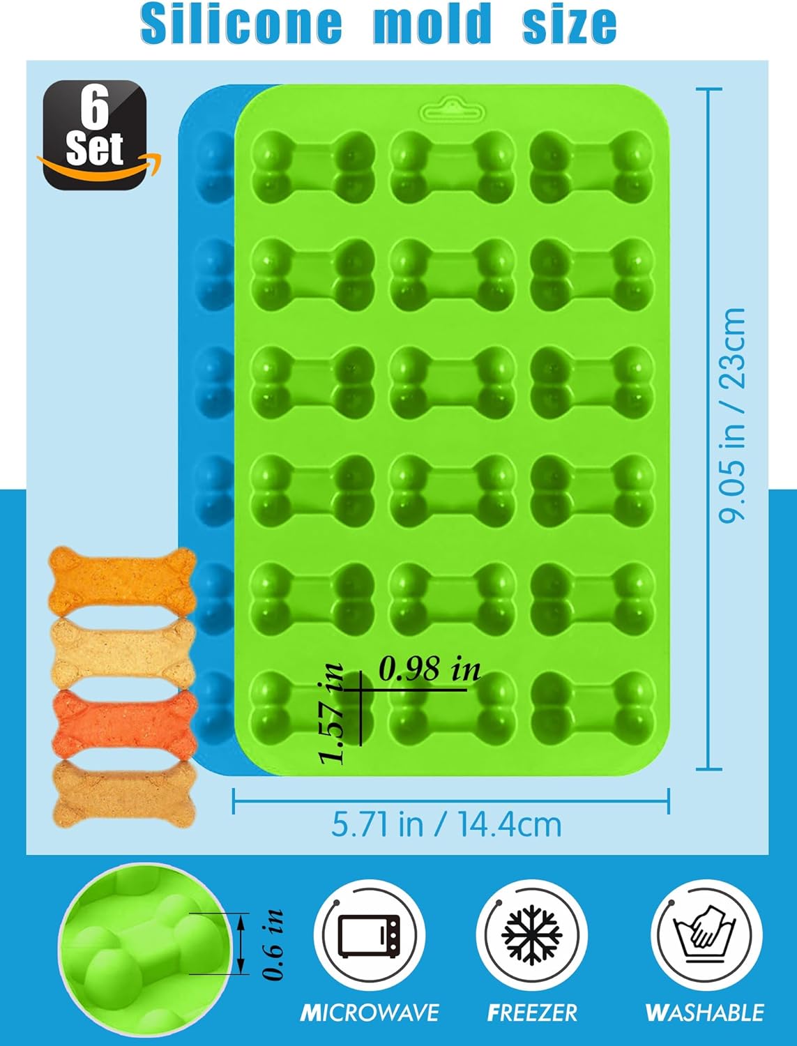 Dog Paw and Bone Molds,Non-Stick Food Grade Silicone Dog Treats Molds for Chocolate, Candy - Set of 6
