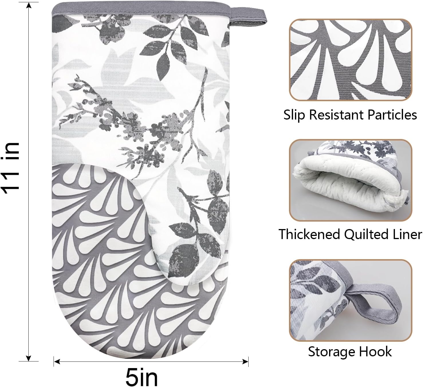 - 3. CUTE & FUNCTIONAL: The oven mitts with fashion patten is cute and add some fun to our kitchen decor. hanging loop, features a convenient for displaying or storing, save your room and make your kitchen look more cleaner.