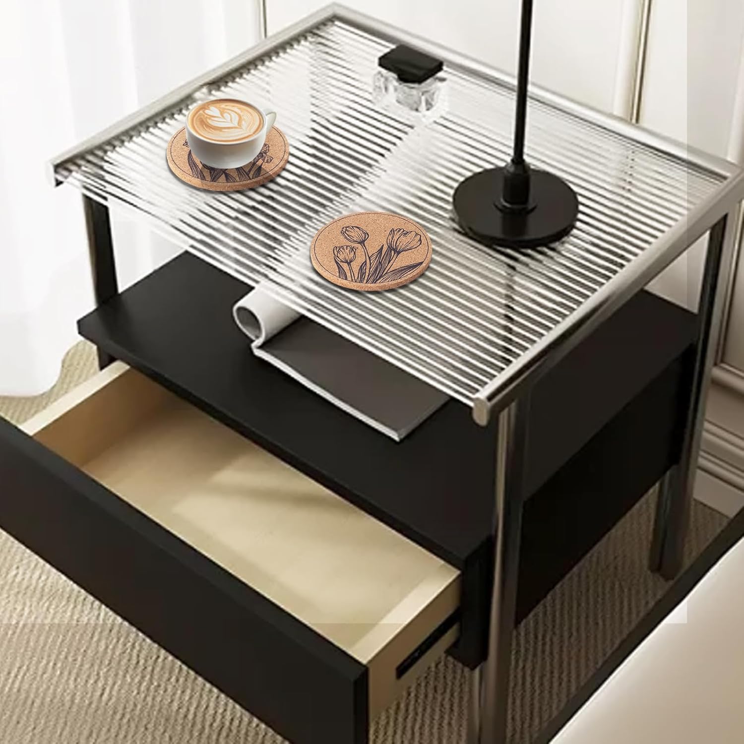 Coasters for Drinks 12 pcs Absorbent Cork Coasters with Flower Coaster for Coffee Table Housewarming Gifts for New Home Present for Friends, Living Room Decor, Apartment Decor
