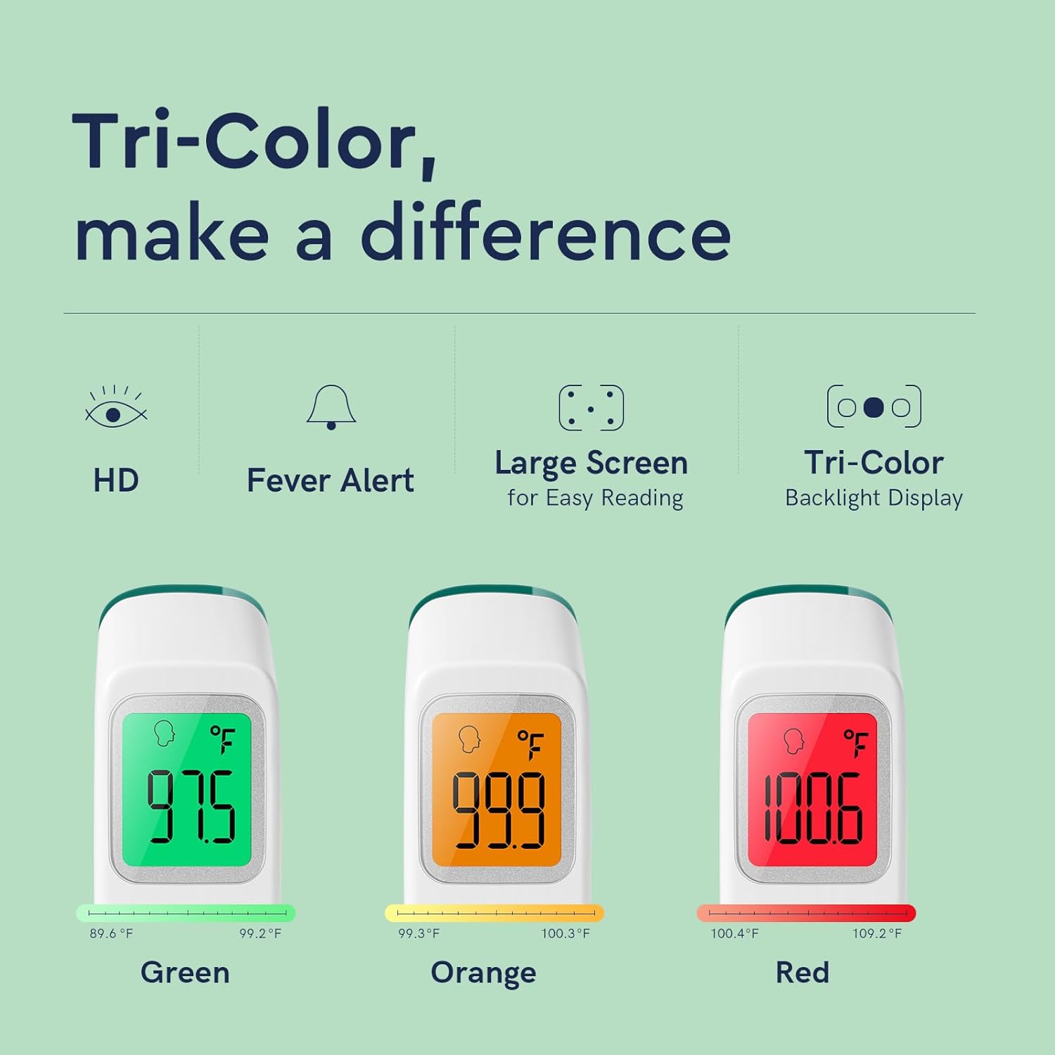 Forehead Thermometer for Adults and Kids, Fast Accurate Thermometer with Fever Alarm, 1S Reading & Silent Mode, Easy to Use Health Thermometer (Green)