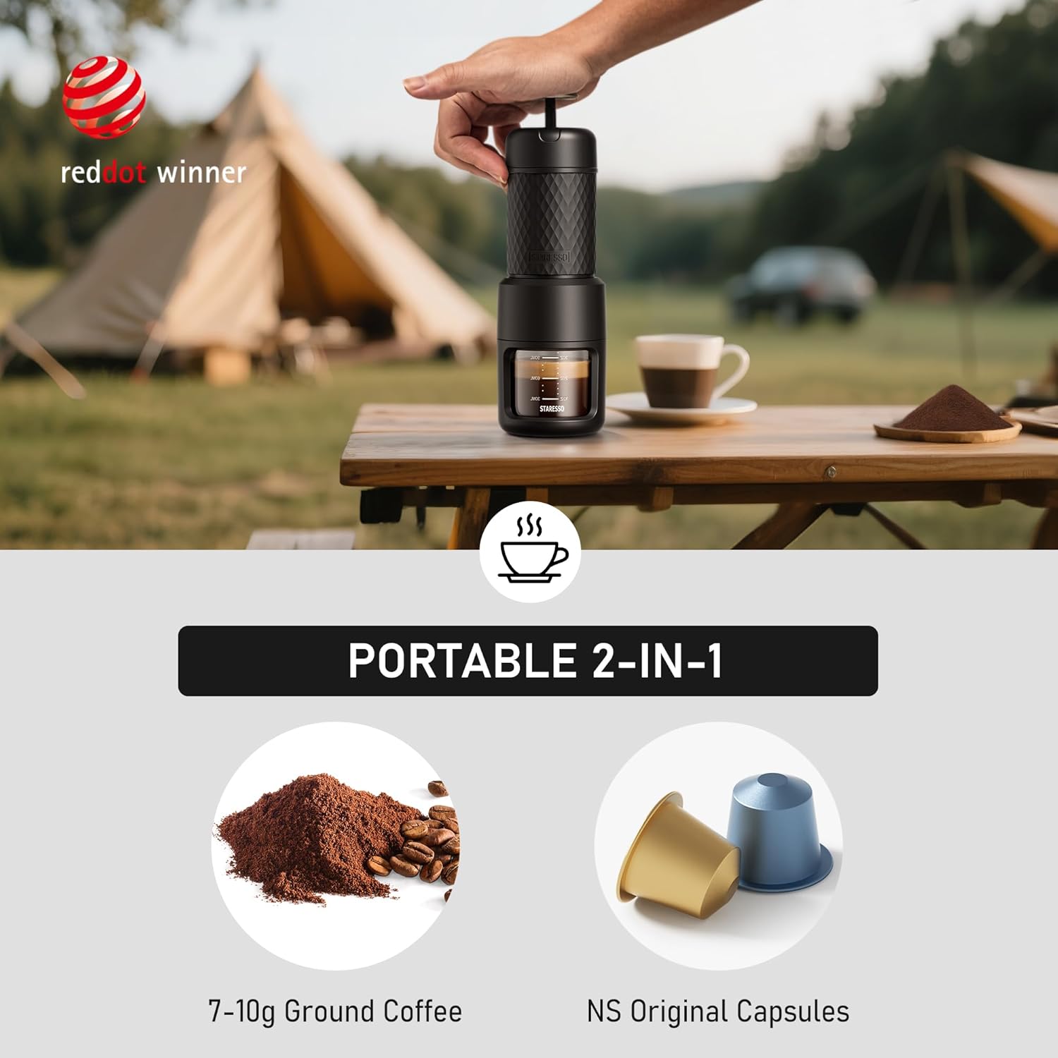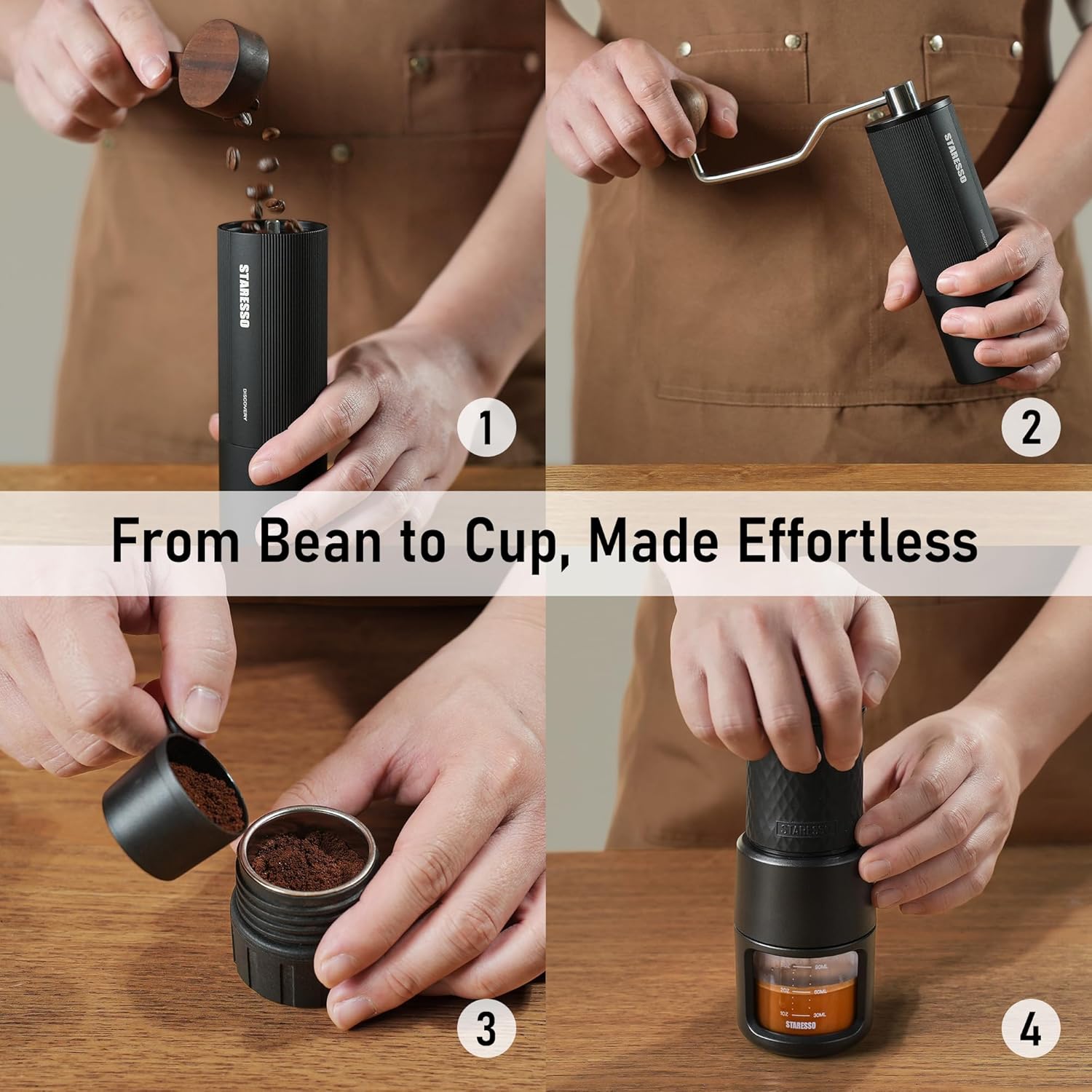 - [Make Barista Espresso On-The-Go] The STARESSO Coffee Maker & Manual Coffee Grinder Set are engineered to brew a delicious and real espresso wherever you go. Flavorful cup of coffee that's fresh from first drop to last, letting you be your own barista at home, office, traveling, camping, boating.