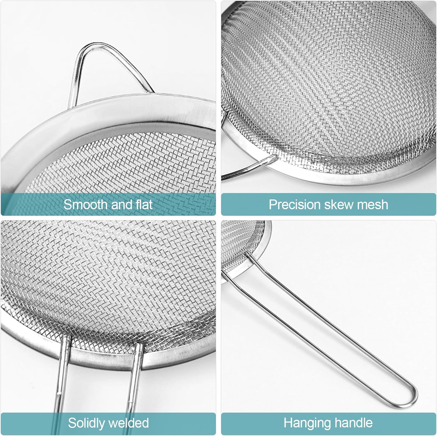 - 🍞Material: Stainless steel strainers are made of high quality stainless steel material. This material is durable and long-lasting, making it an ideal choice for kitchen utensils.
