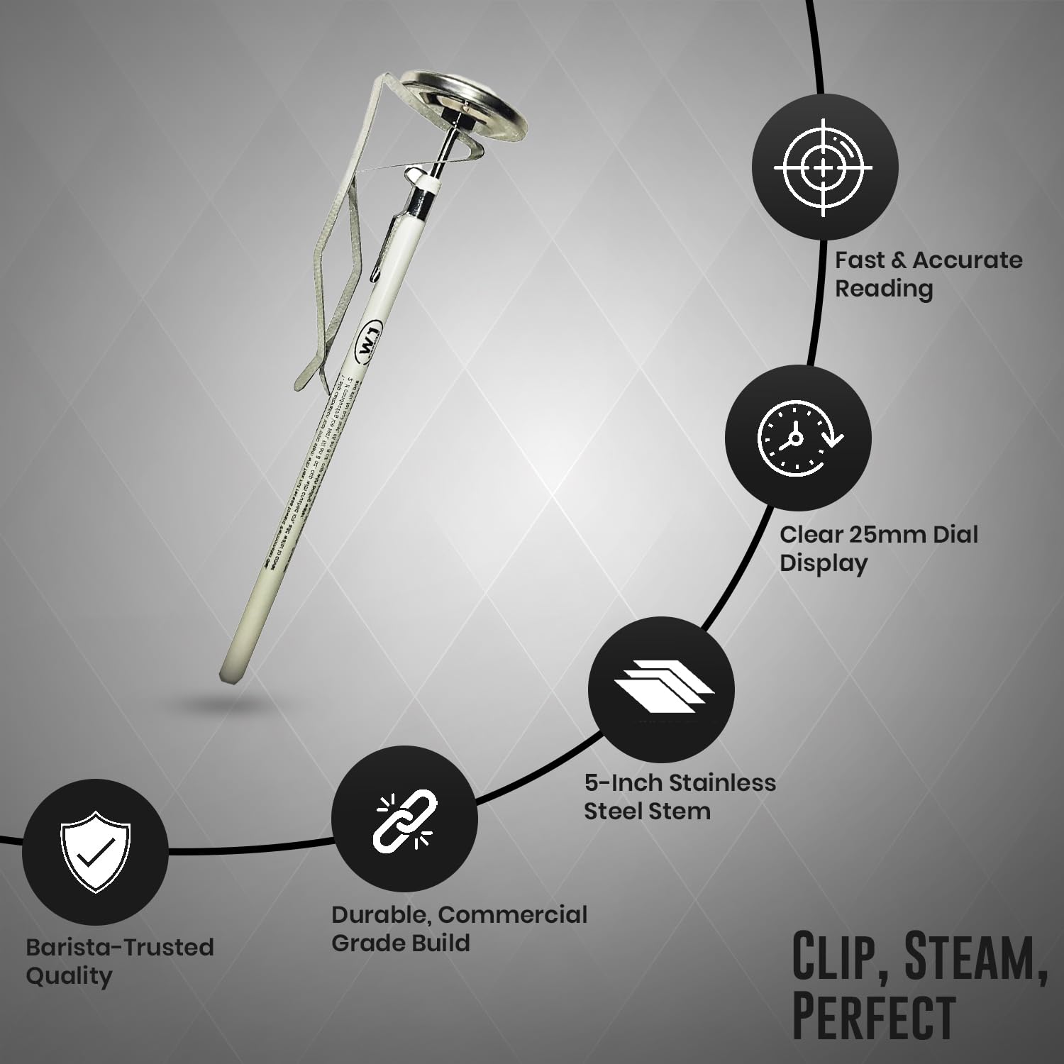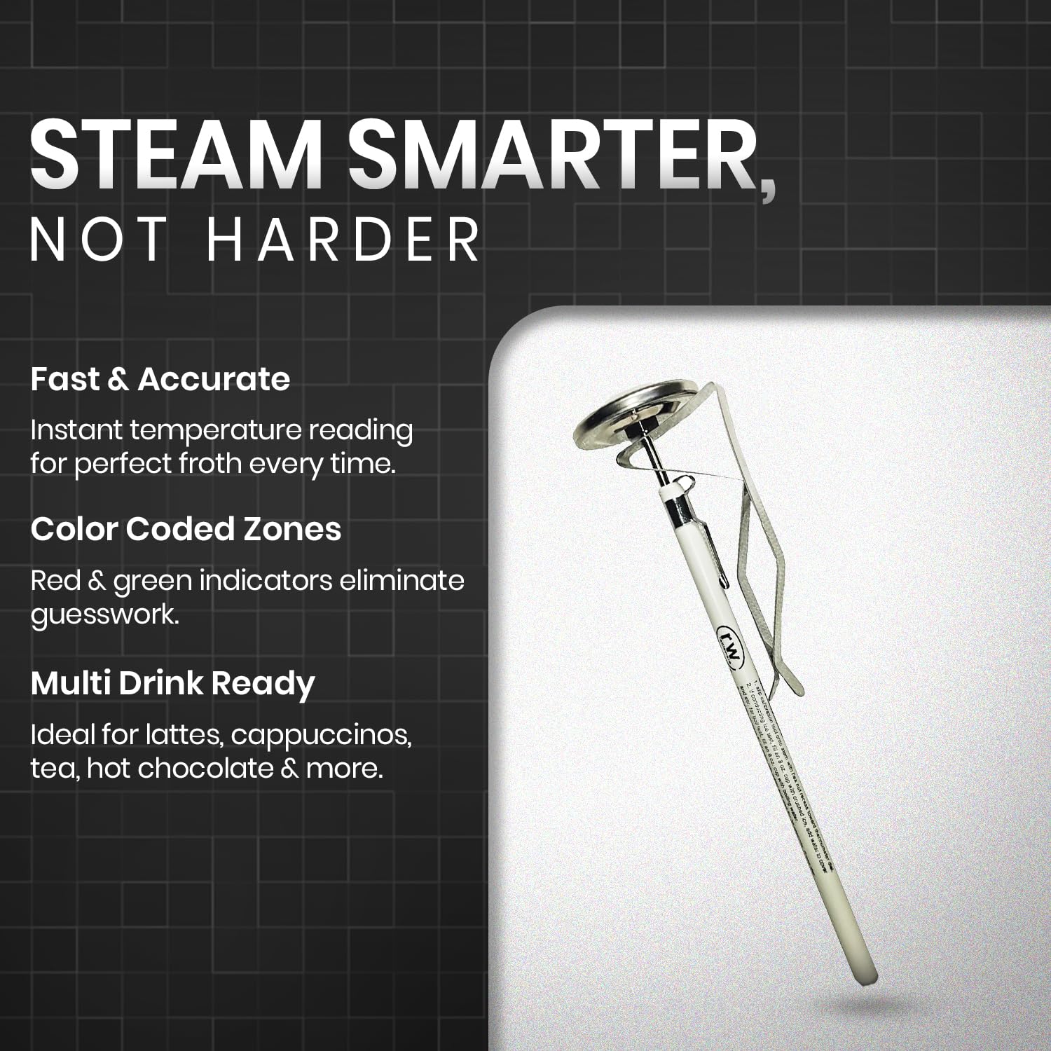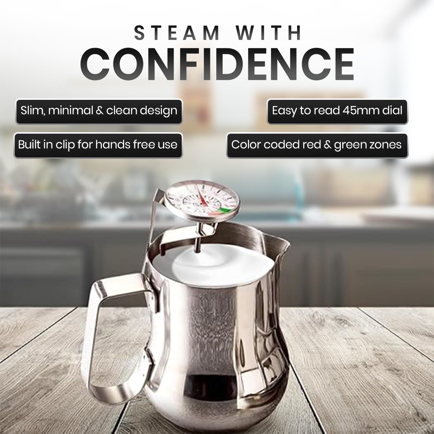 - 𝐏𝐄𝐑𝐅𝐄𝐂𝐓 𝐅𝐎𝐑 𝐇𝐎𝐌𝐄 𝐀𝐍𝐃 𝐂𝐎𝐌𝐌𝐄𝐑𝐂𝐈𝐀𝐋 𝐔𝐒𝐄: A versatile addition to any kitchen, our 7" Easy Steam Thermometer combines fast reading, user-friendly features, and unmatched reliability, making it the ultimate choice for home coffee enthusiasts, professional baristas, and bustling restaurant settings. Increase the quality of your beverages and elevate your coffee game by choosing the best thermometer on the market.