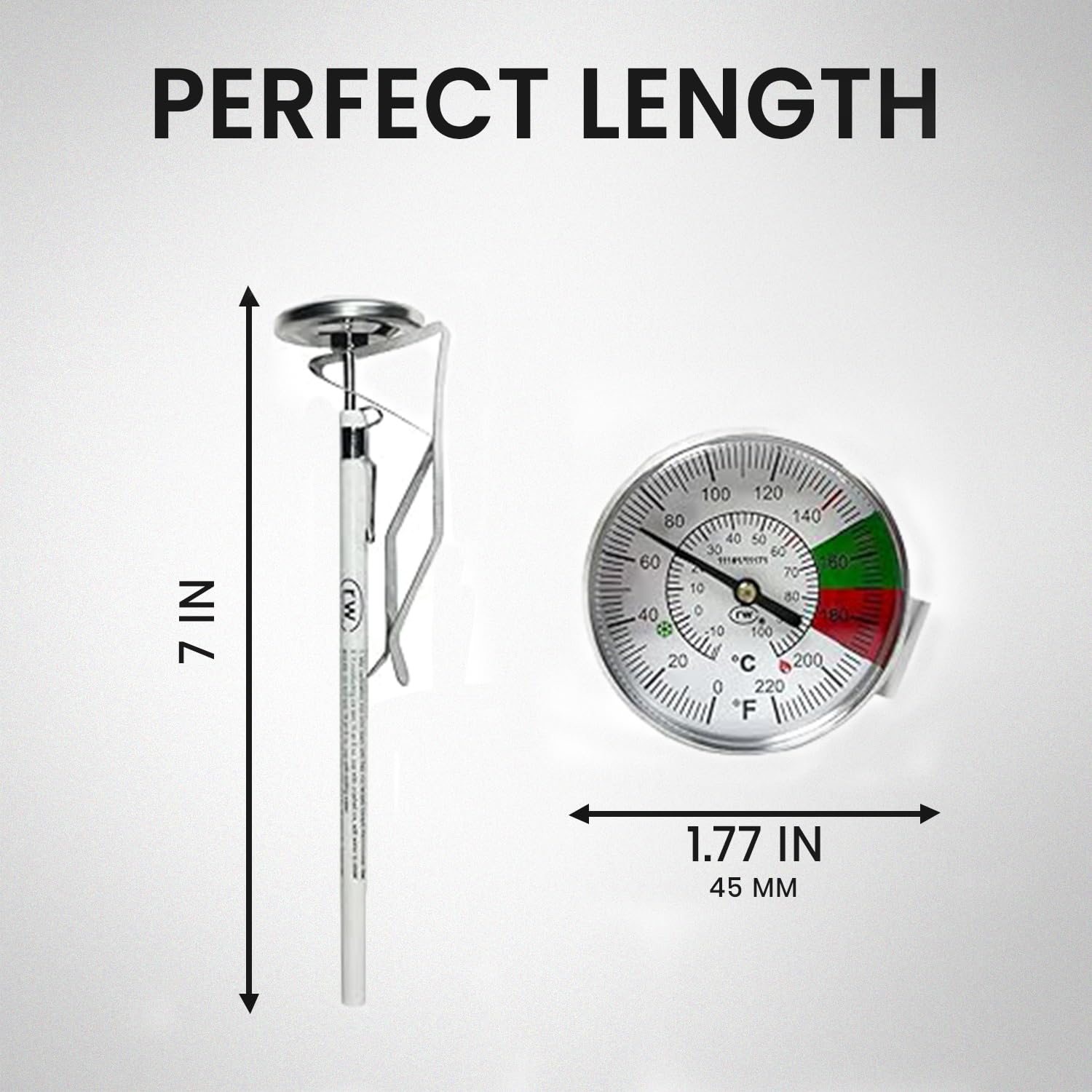 Rattleware 7” Easy Steam Thermometer for Home, Cafe, Restaurants, Residential, or Commercial Use - Milk Frothing and Barista Thermometer - Durable Fast Reading (45mm Dial)
