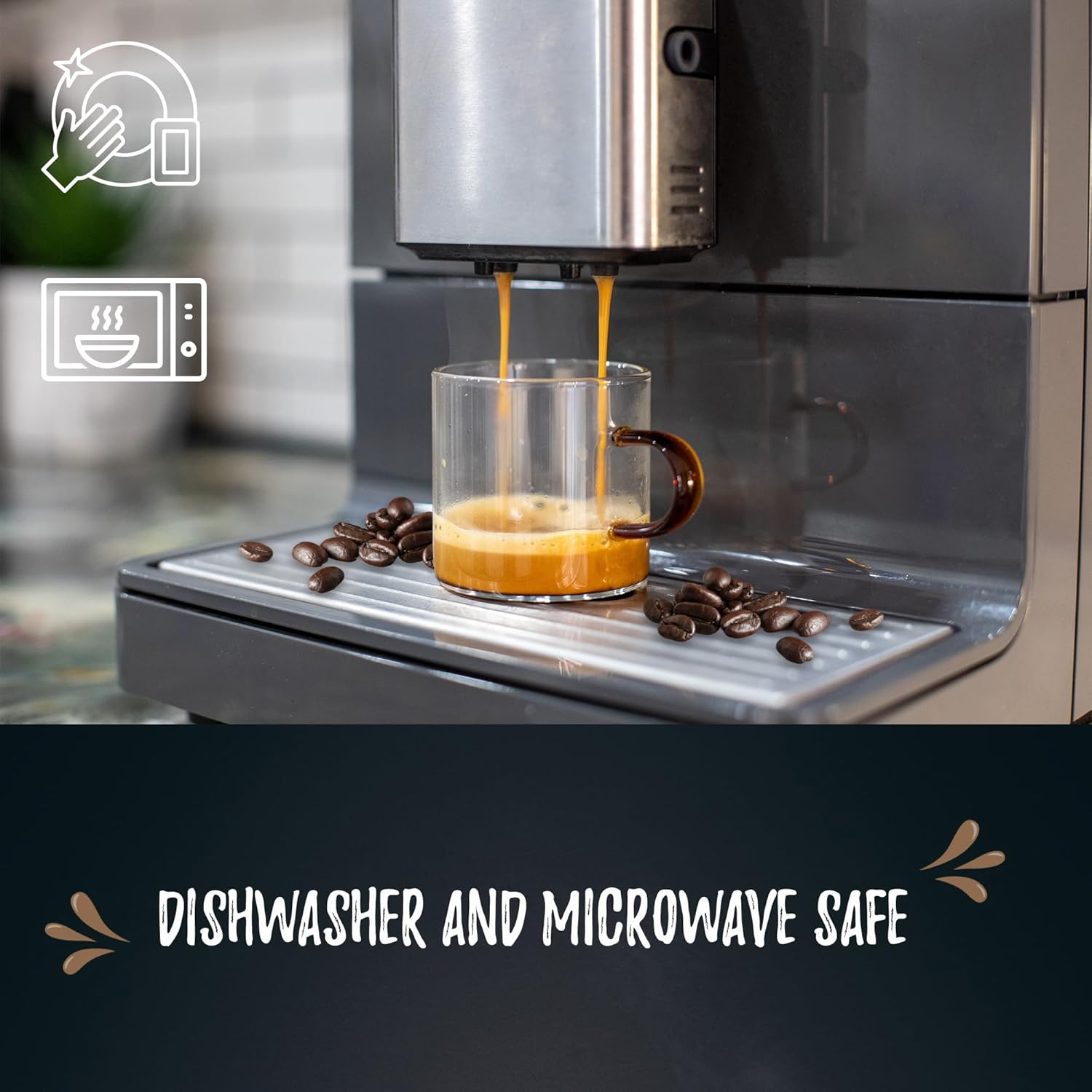 - CLEAR GLASS ELEGANCE: The clear glass design of the high borosilicate glass cup allows you to appreciate the rich colors of your espresso, creating a visually pleasing presentation that enhances your coffee-drinking experience.