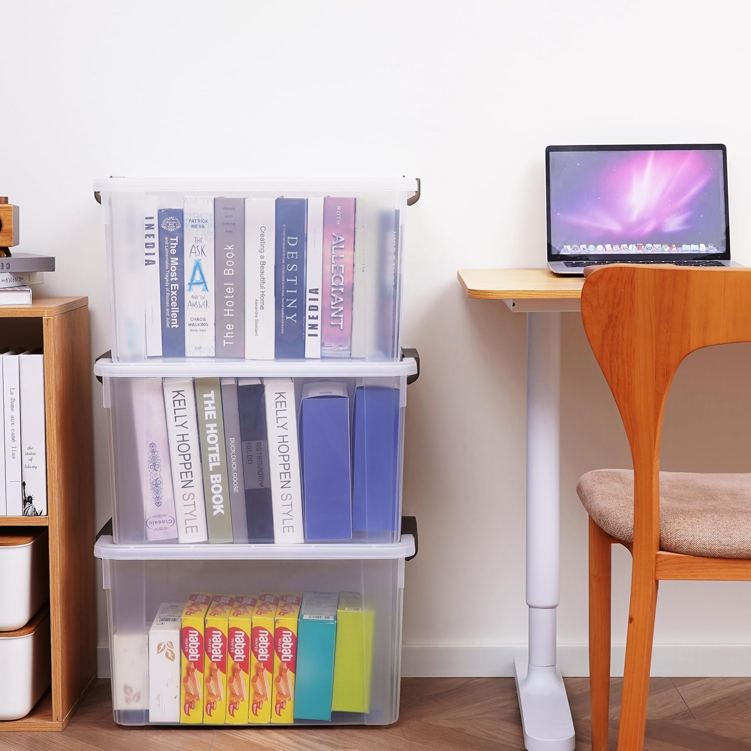 - 【69-quart Capacity】Package includes 6 containers for organizing, single measuring 23.23"L * 16.93"W * 13.39"H, capacity 69 QT. Suitable for large storage needs in the closet, garage, bedroom, basement, camping, office, etc