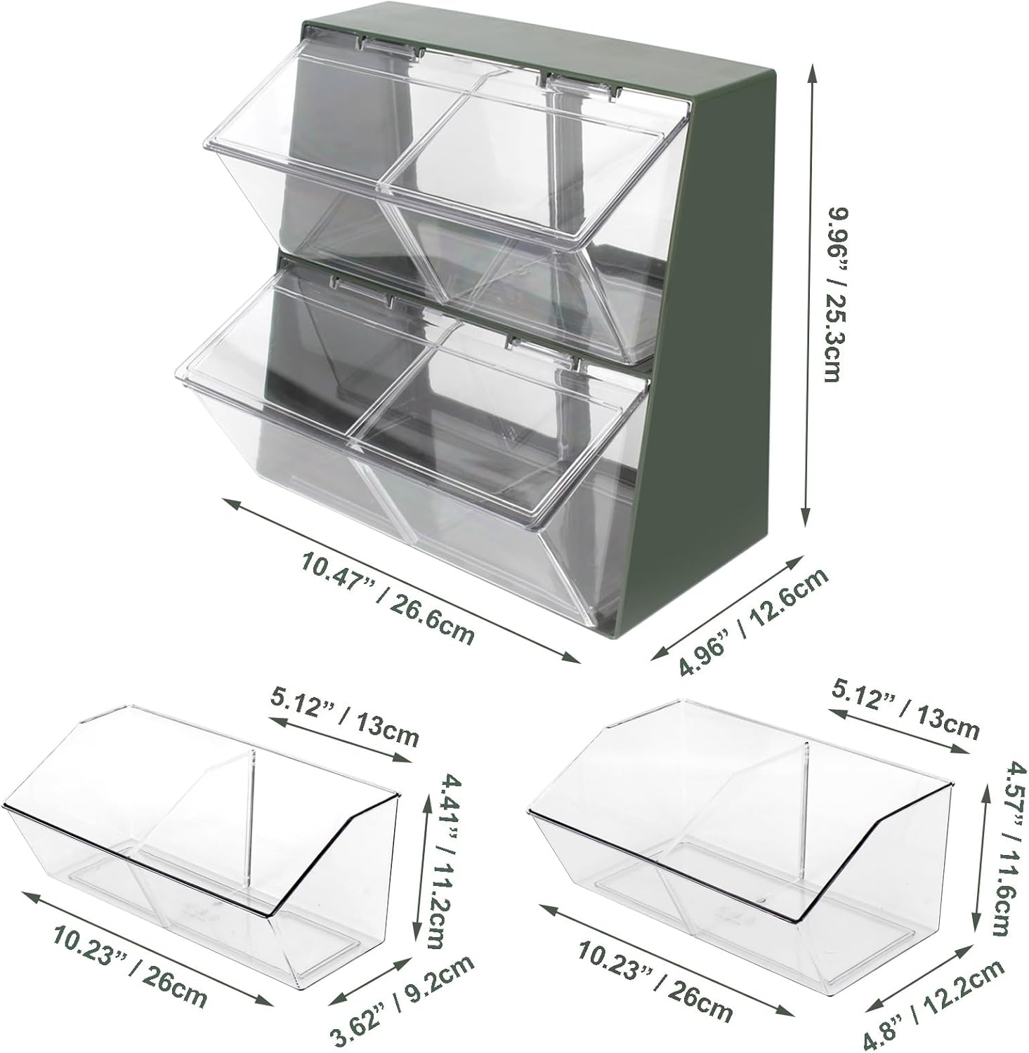 - Large opening design, Partitioned storage, Easy to organise and access --- This tea bag organizer features partitioned compartments that allow you to easily organize and categorize tea bags, coffee pods, filter and snacks. The spacious and wide opening design enables you to effortlessly retrieve and place your favorites