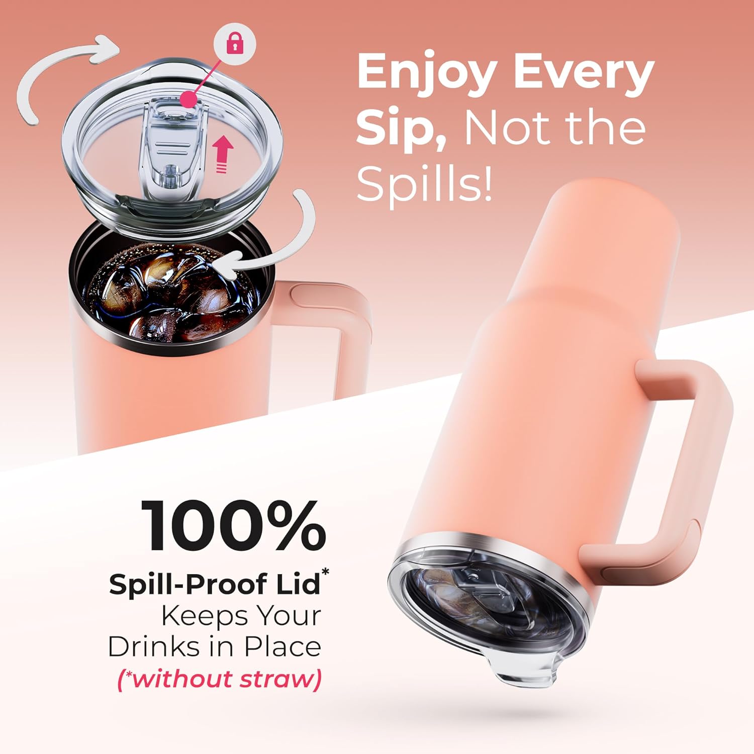 - Dishwasher Safe and Easy to Clean: Designed for convenience, this leak proof tumbler is dishwasher safe. The stainless steel construction ensures long-lasting durability, while the large handle adds to its functionality. Compatible with most cup holders, it's perfect for use at home, in the office, or on the go.