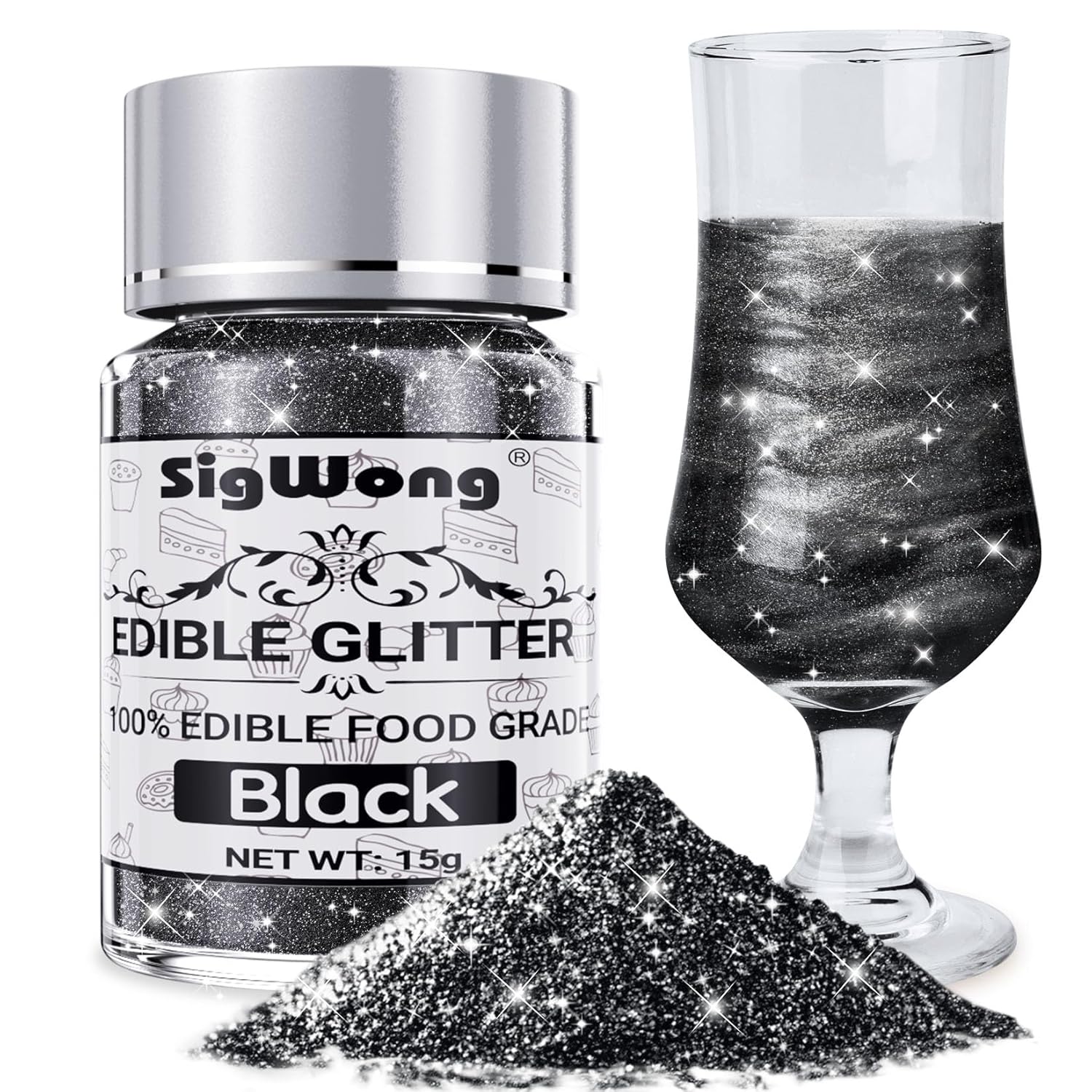 Black Edible Glitter - 15g Food Grade Luster Dust Powder, Cake Decorating Sprinkle Glimmery Dust for Drinks, Wine, Fondant, Chocolate, Candy, Cookie, Vegan