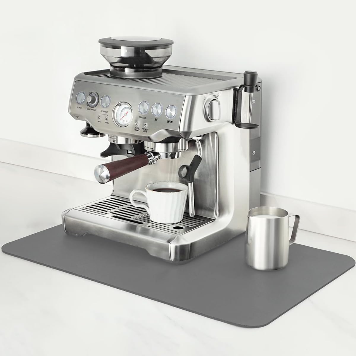 - POWERFUL ABSORPTION: This espresso mat is made of super absorbent material that can suck up spilled coffee instantly when you use the coffee machine or espresso maker, no need to wipe the sink countertops every time after using the coffee mats for countertop.