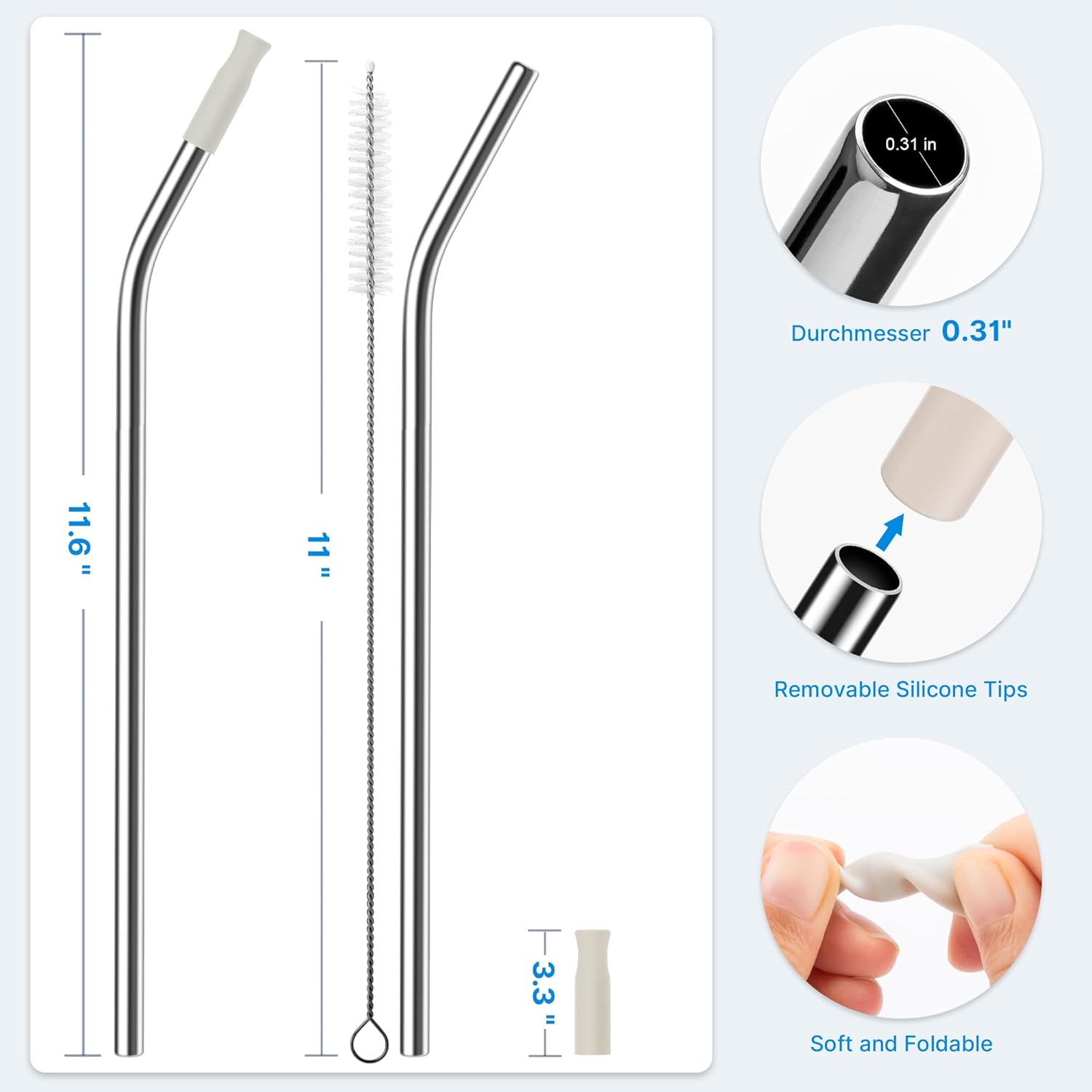 - 【Silicone Tips】 Our straws are paired food-grade silicone tips for a safe and comfortable sipping experience. The soft and flexible silicone tips ensure a gentle touch while preventing any potential harm to your teeth or lips