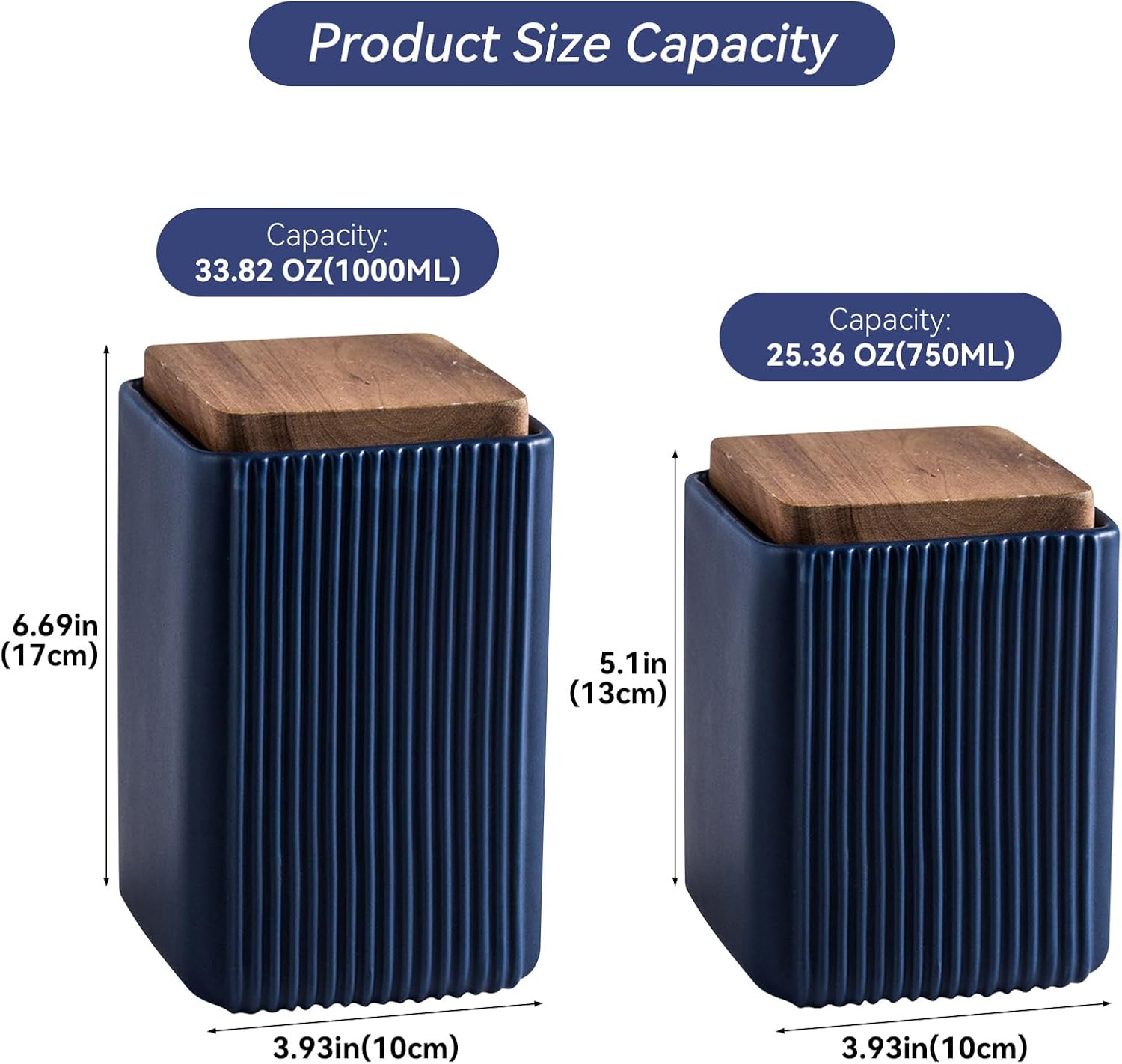 Ceramic Storage Jars Modern Elegant Highly Polished Airtight Storage Canisters with Lid Whiteware Food Stroage Jar for Kitchen Spice Tea Vanilla Sugar Coffee Beans (Blue-1000ML)