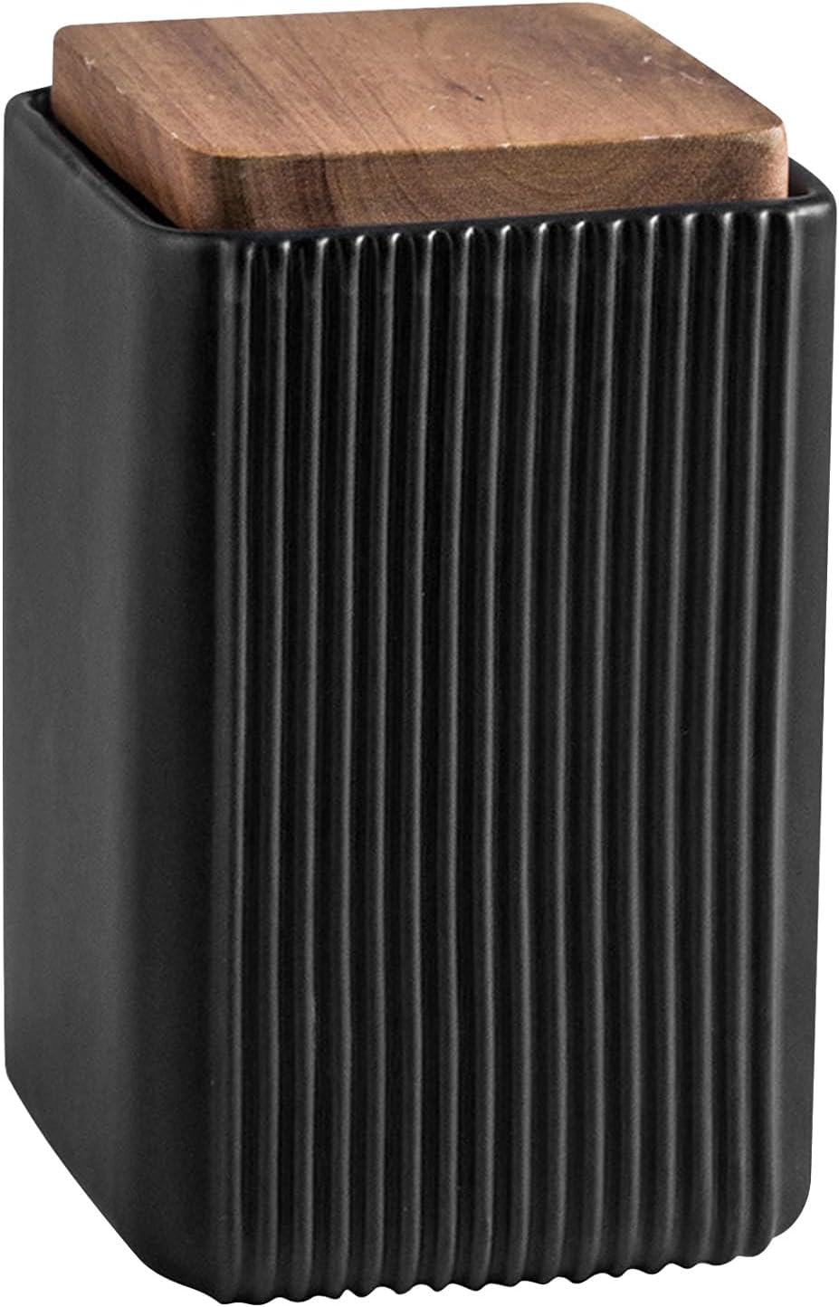 Ceramic Storage Jars Modern Elegant Polished Airtight Gorgeous Storage Canisters with Wooden Lid Small Food Stroage Jar for Kitchen Spice Tea Vanilla Sugar Coffee Beans (Black,Large size,17cm*10cm)
