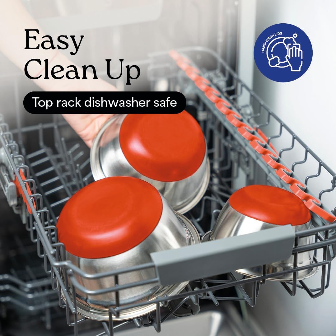 - Effortless Cleanup with Dishwasher Safe Design: Our stainless steel metal mixing bowls with lids are dishwasher safe, allowing you to focus on what you love - cooking and baking. Skip the tedious task of hand-washing and enjoy more time to savor your delicious creations. This convenient feature is especially beneficial for home chefs desiring practicality without compromising on the professional quality and precision of your kitchen tools.