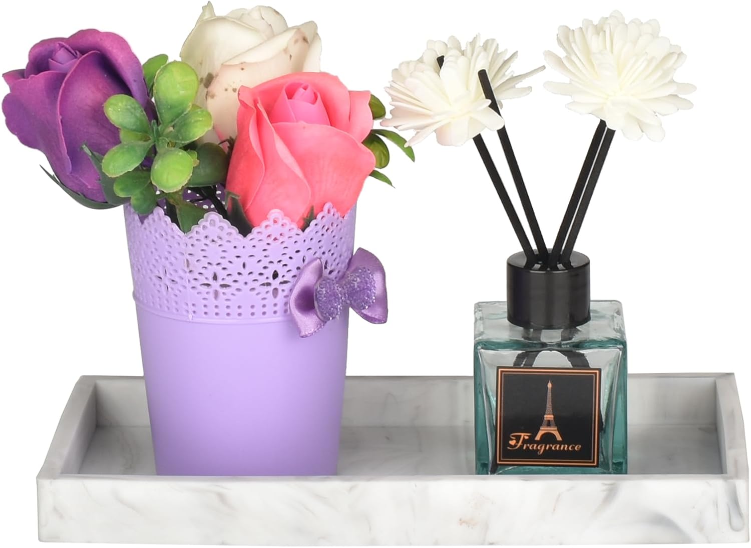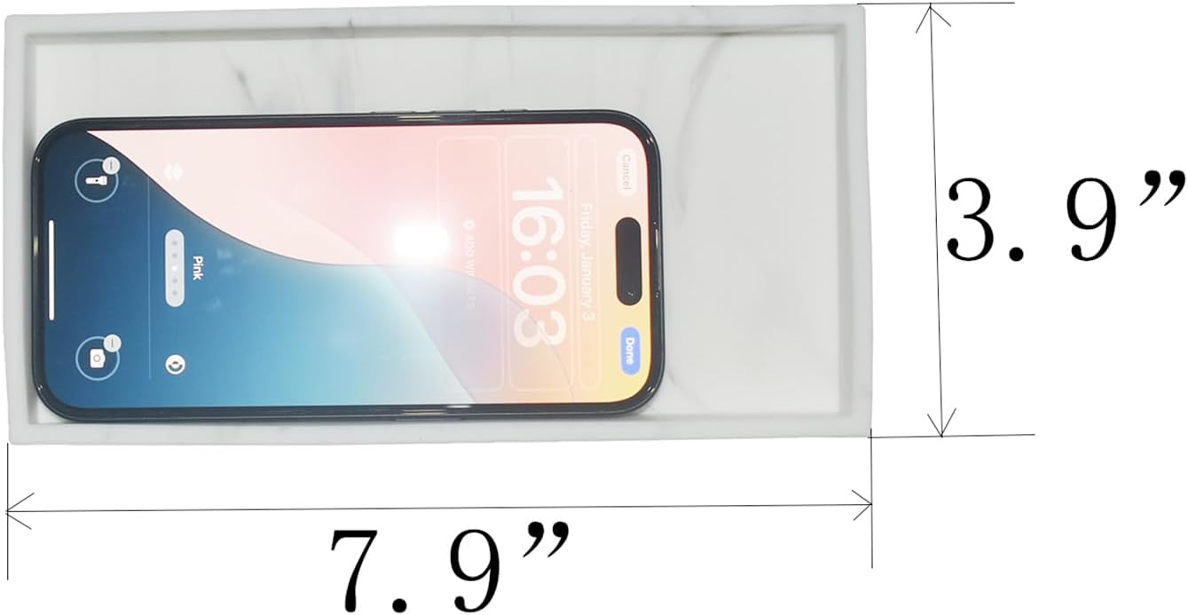 - 🔺Small Size🔺7.9” x 3.9” . This tray allows to organize dish soap, sponge, perfume, candle, cologne, makeup, ring, key, trinket, skincare and other life essentials. You can tidy up easily to use these trays as kitchen or bathroom trays for counter or vanity trays for bathroom. This silicone marble tray is decorative, which matches perfectly with countertop to brighten up home decor.
